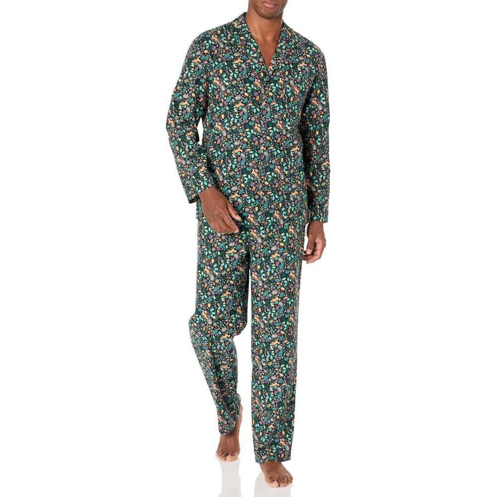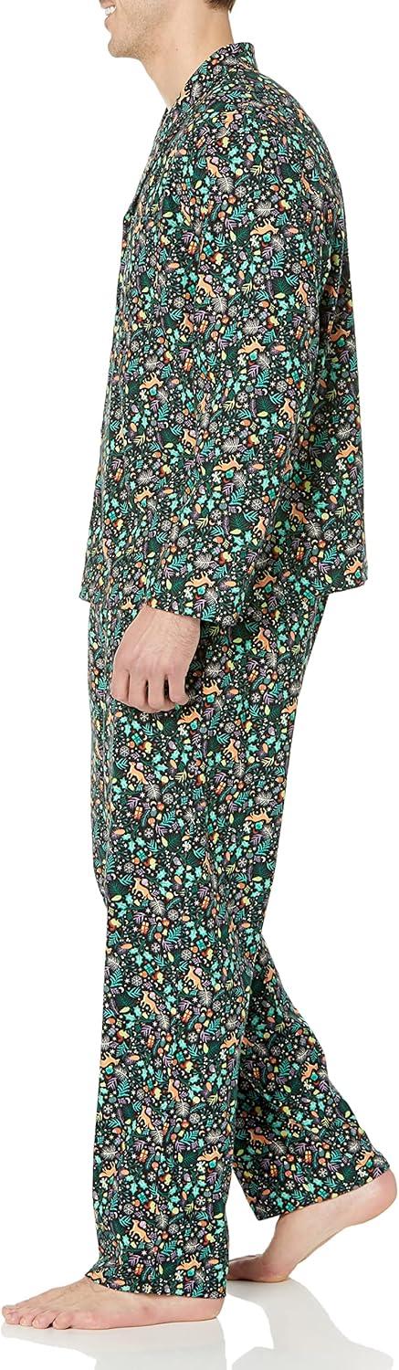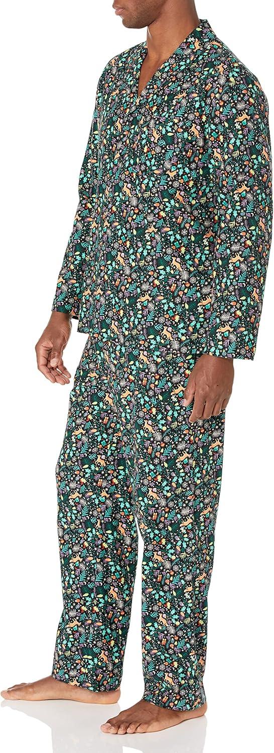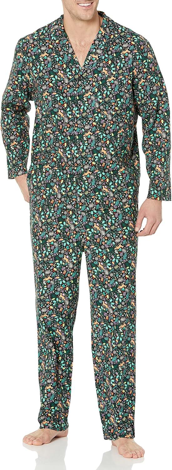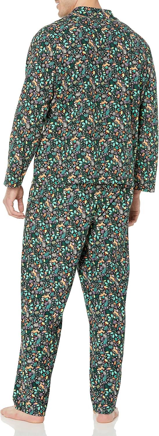 Amazon Essentials Men’s Flannel Pajama Set(Mint Green Forest Animals)