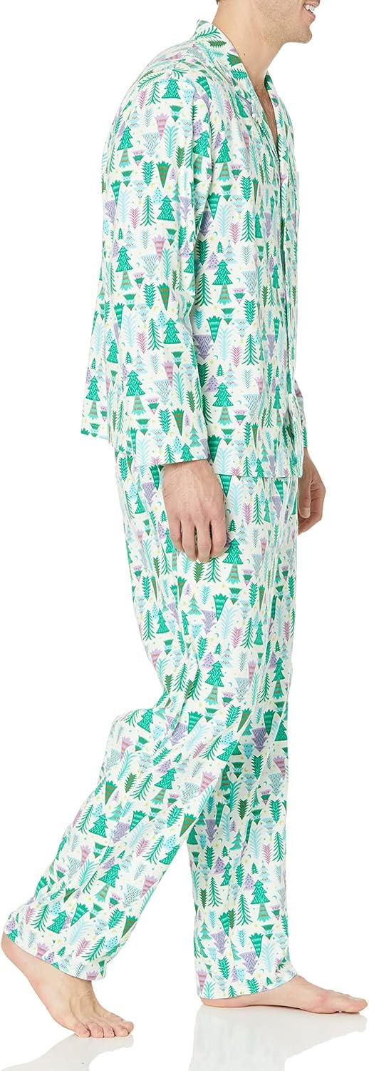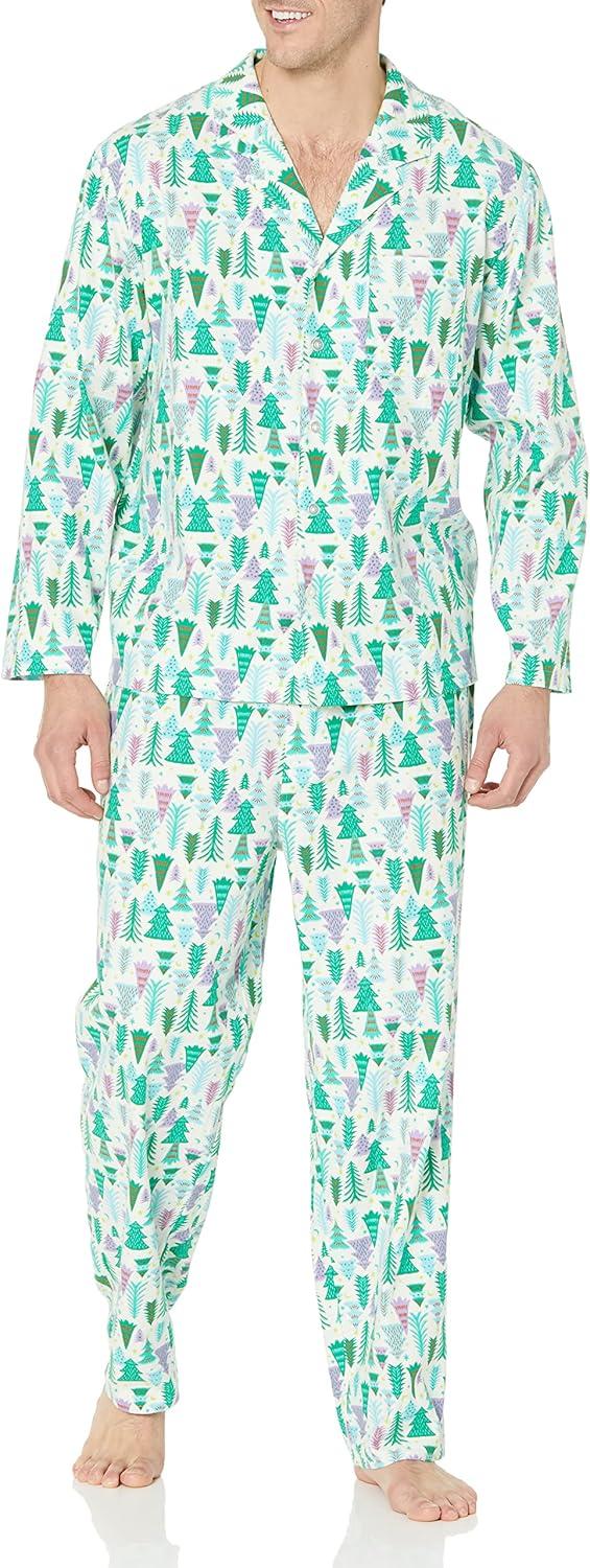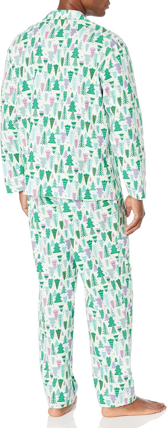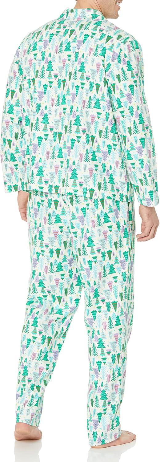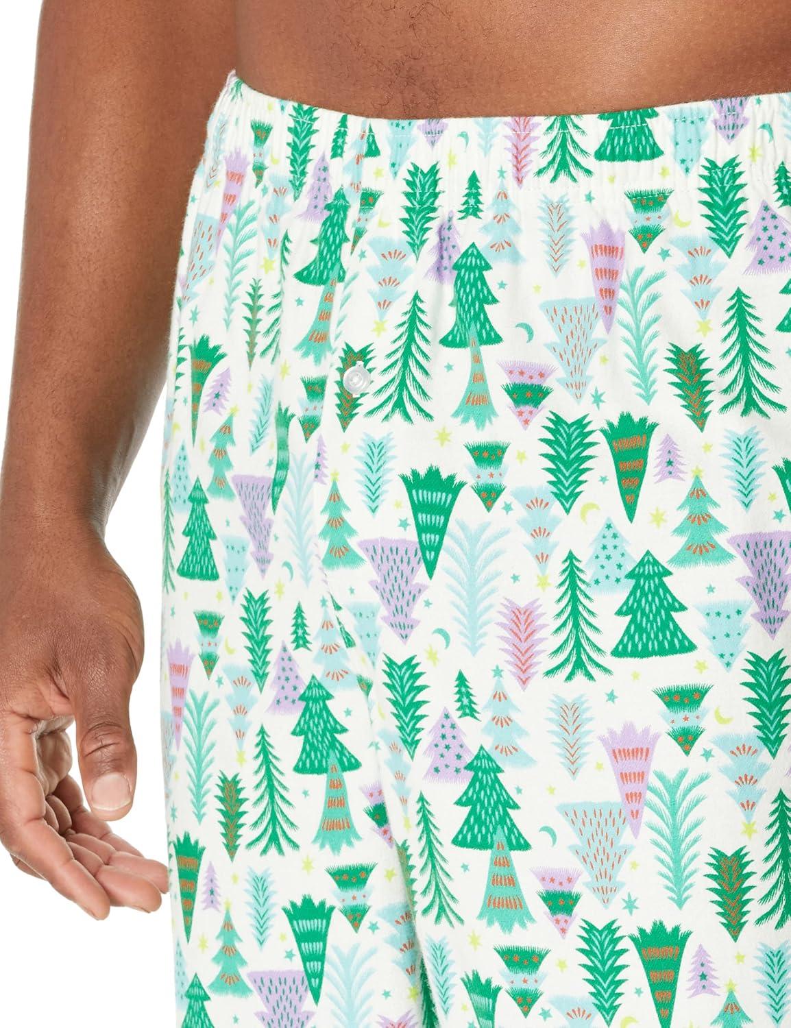 Amazon Essentials Men’s Flannel Pajama Set(Ecru Festive Tree)
