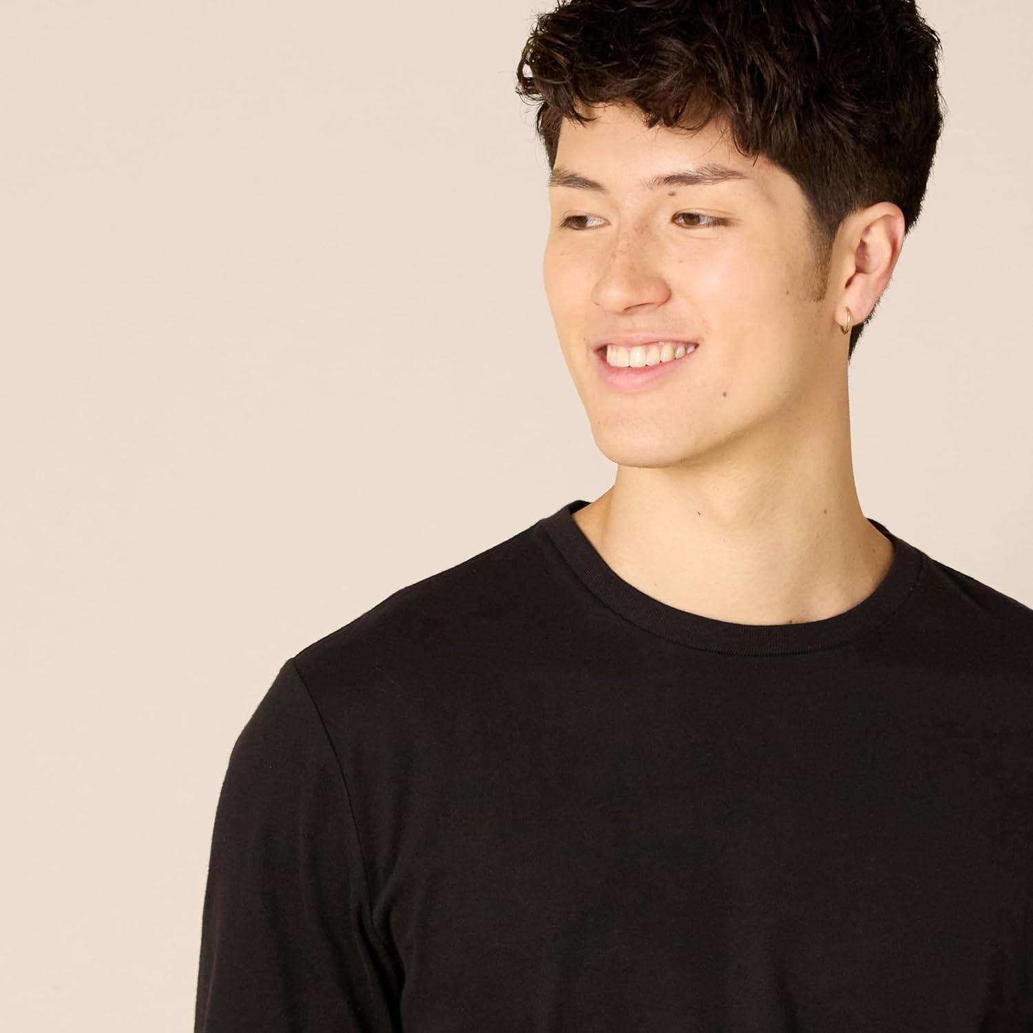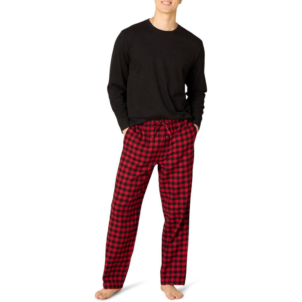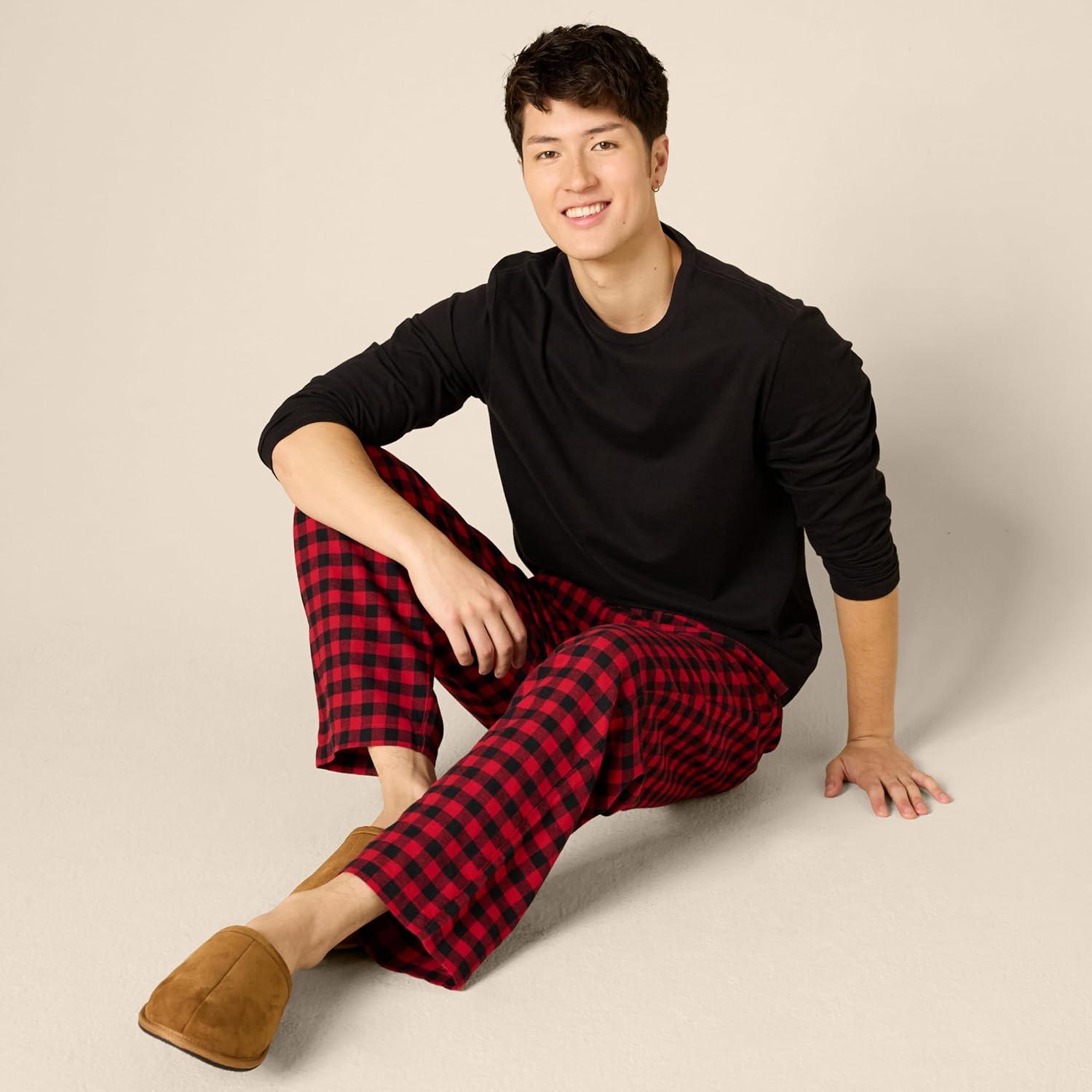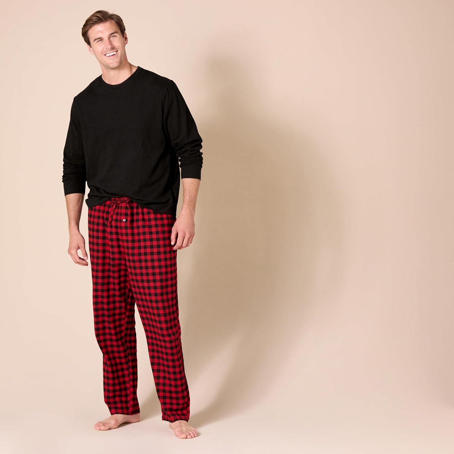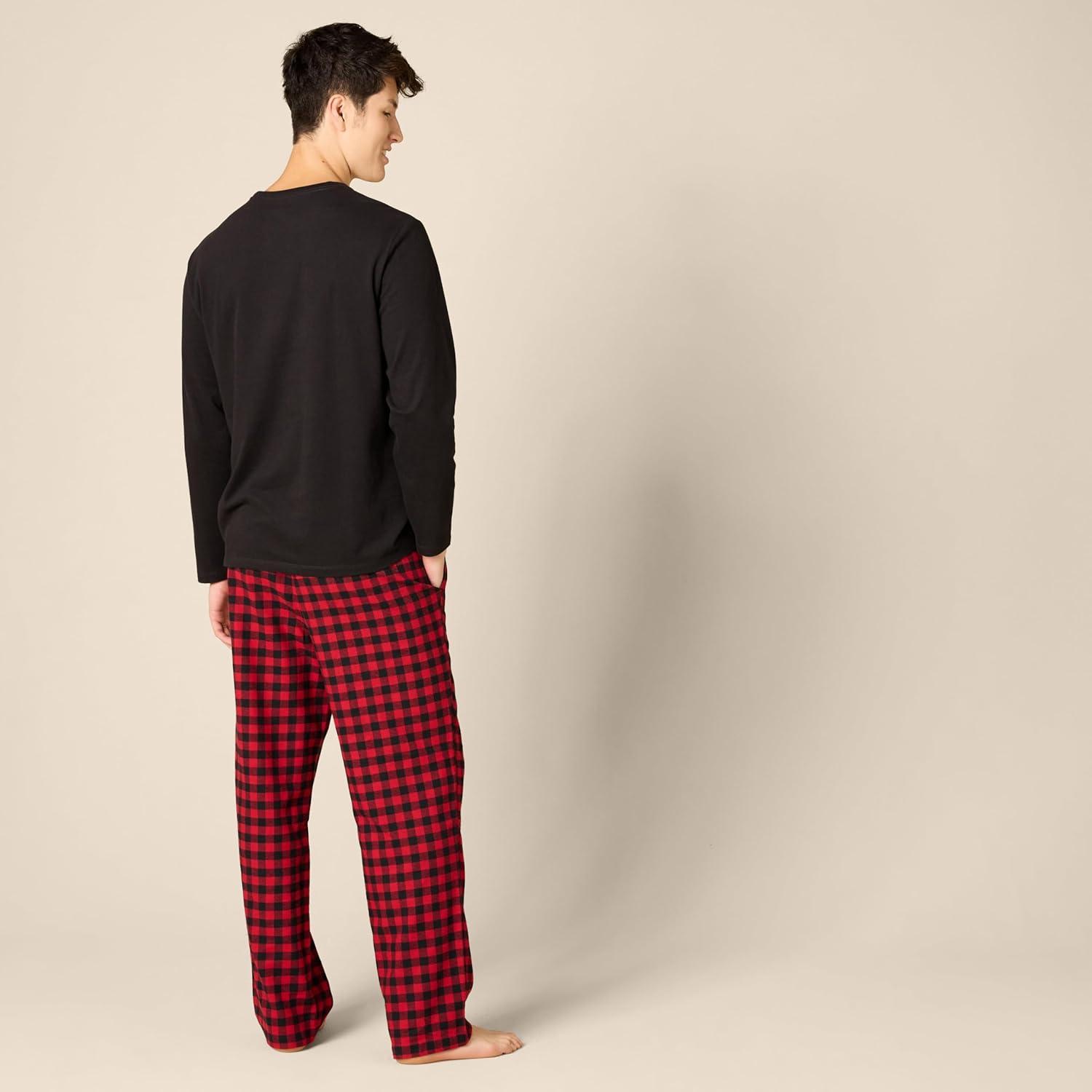 Amazon Essentials Men’s Flannel Pant and Long-Sleeve T-Shirt Pajama Set(Black and Classic Buffalo Check)