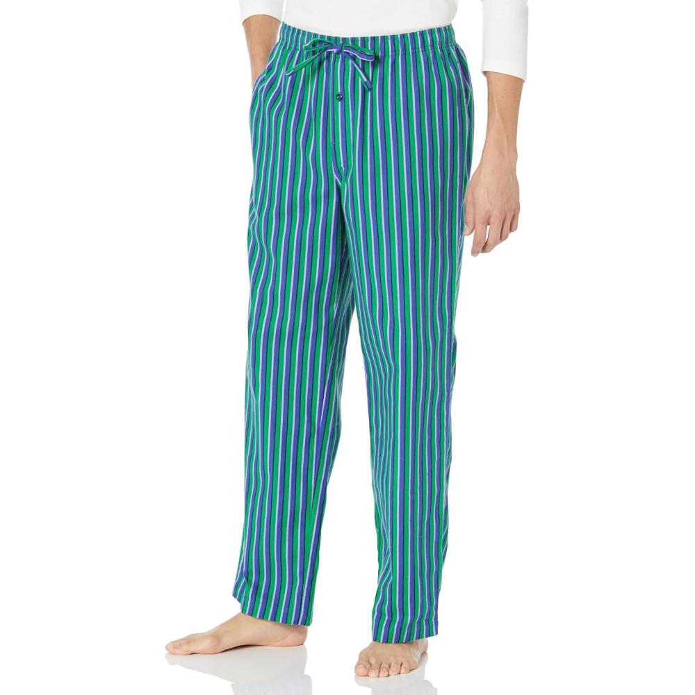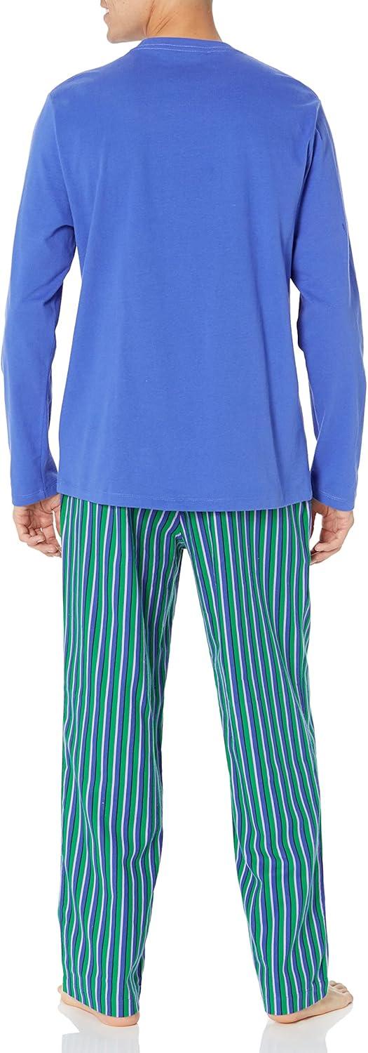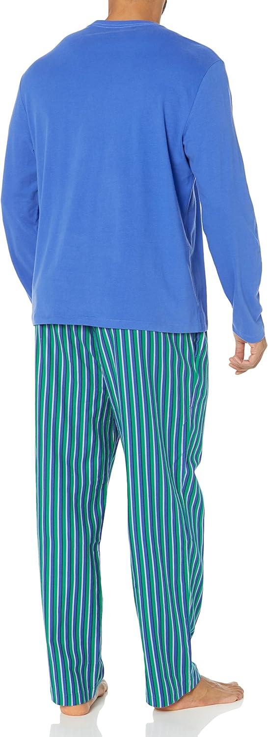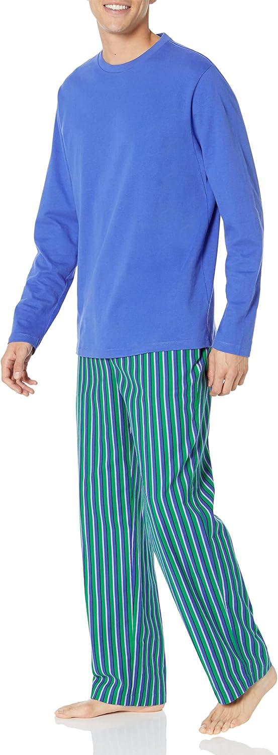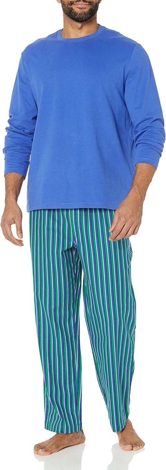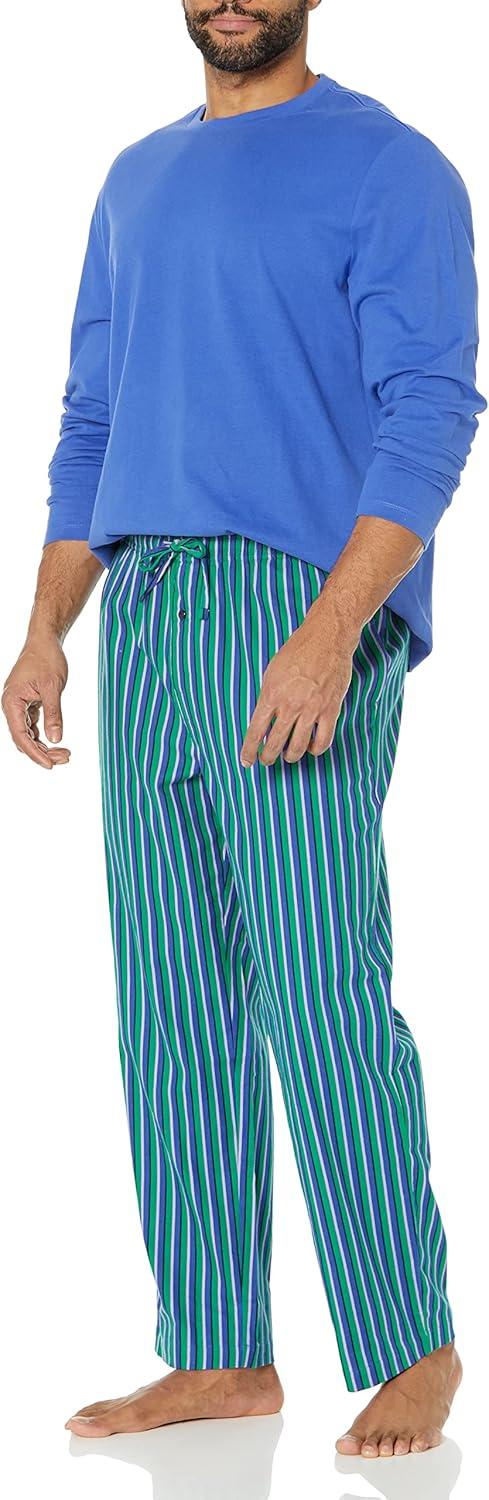 Amazon Essentials Men’s Flannel Pant and Long-Sleeve T-Shirt Pajama Set(Blue Green Stripe)