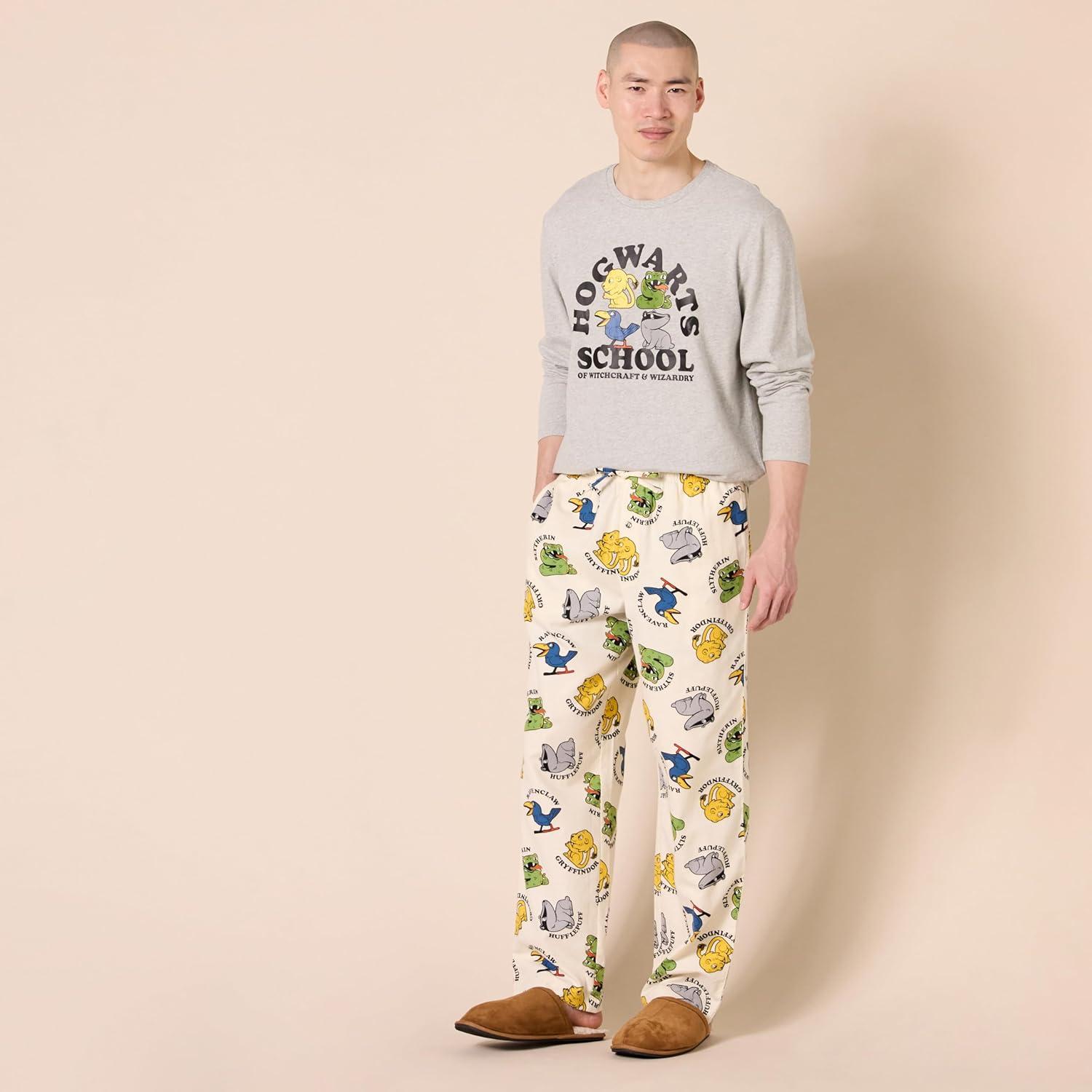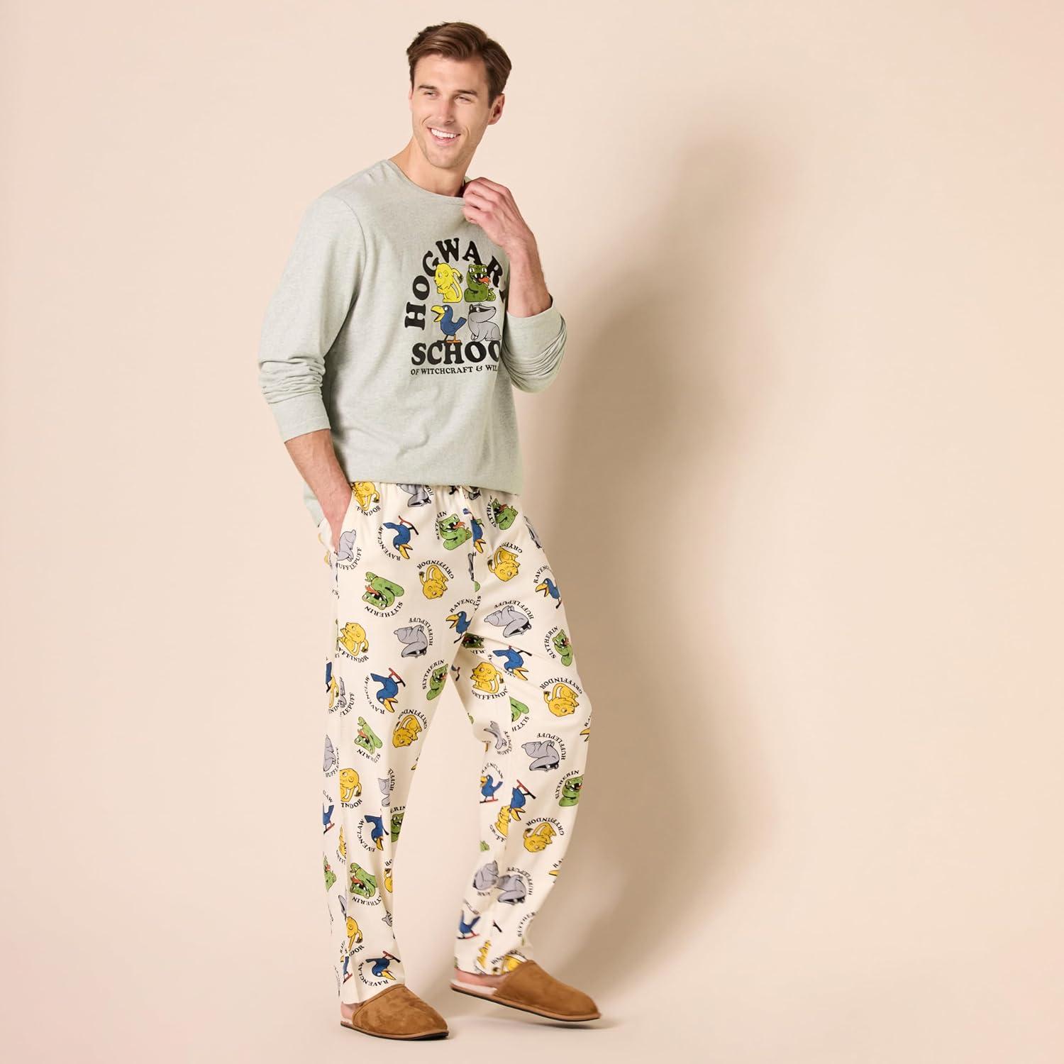 Amazon Essentials Men's Flannel Pant and Long-Sleeve T-Shirt Pajama Set(Harry Potter Hogwarts - Mens)