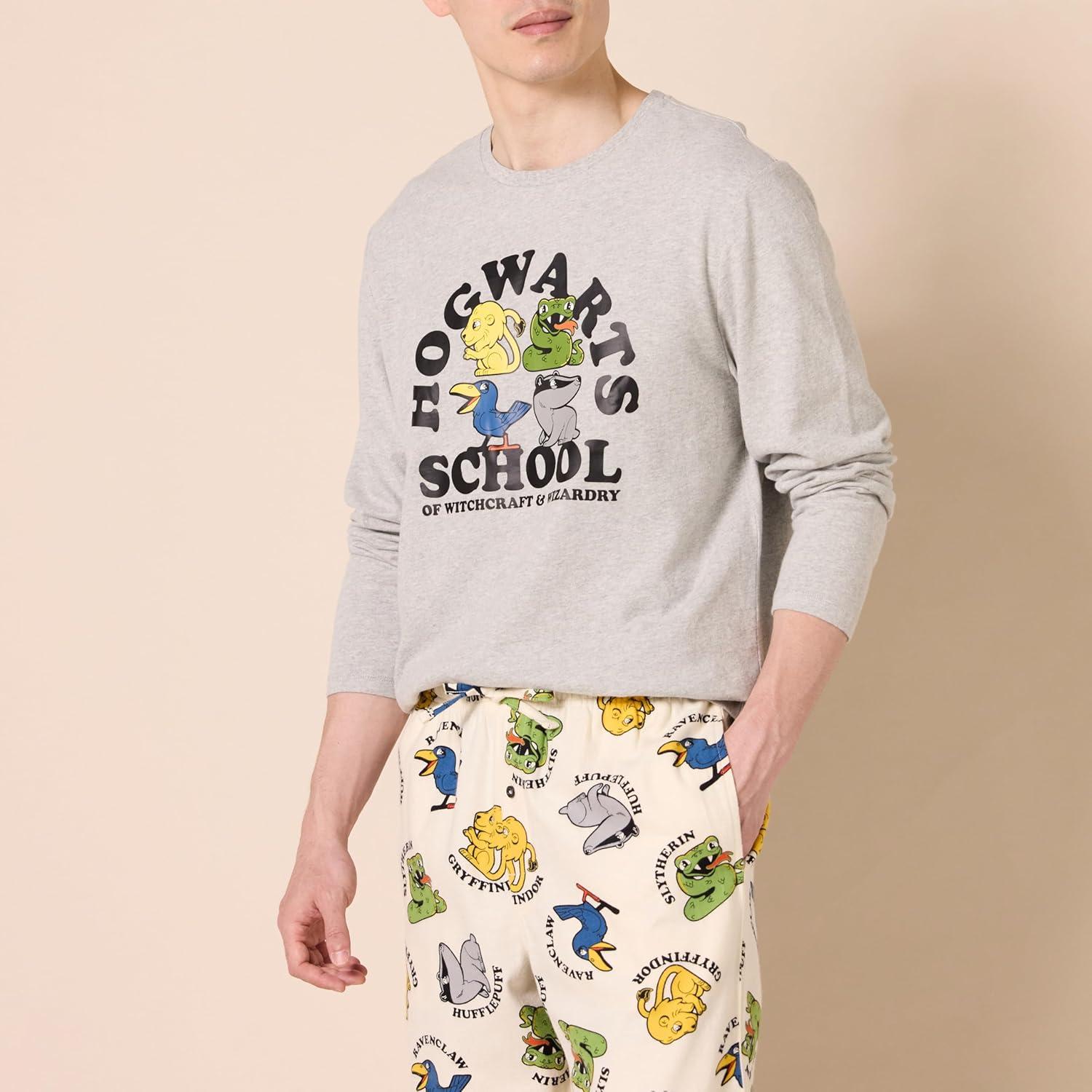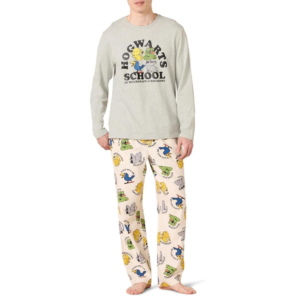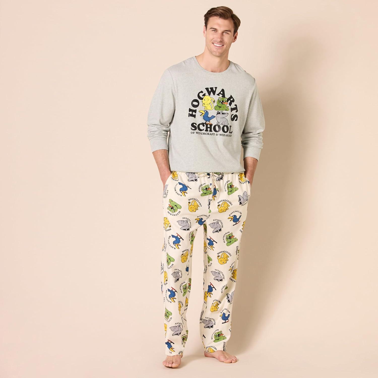 Amazon Essentials Men’s Flannel Pant and Long-Sleeve T-Shirt Pajama Set(Harry Potter Hogwarts – Mens)