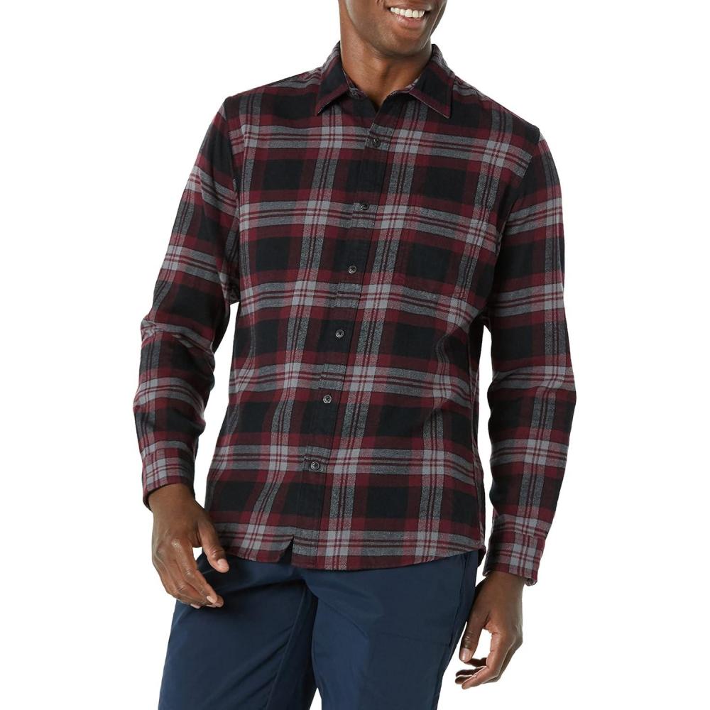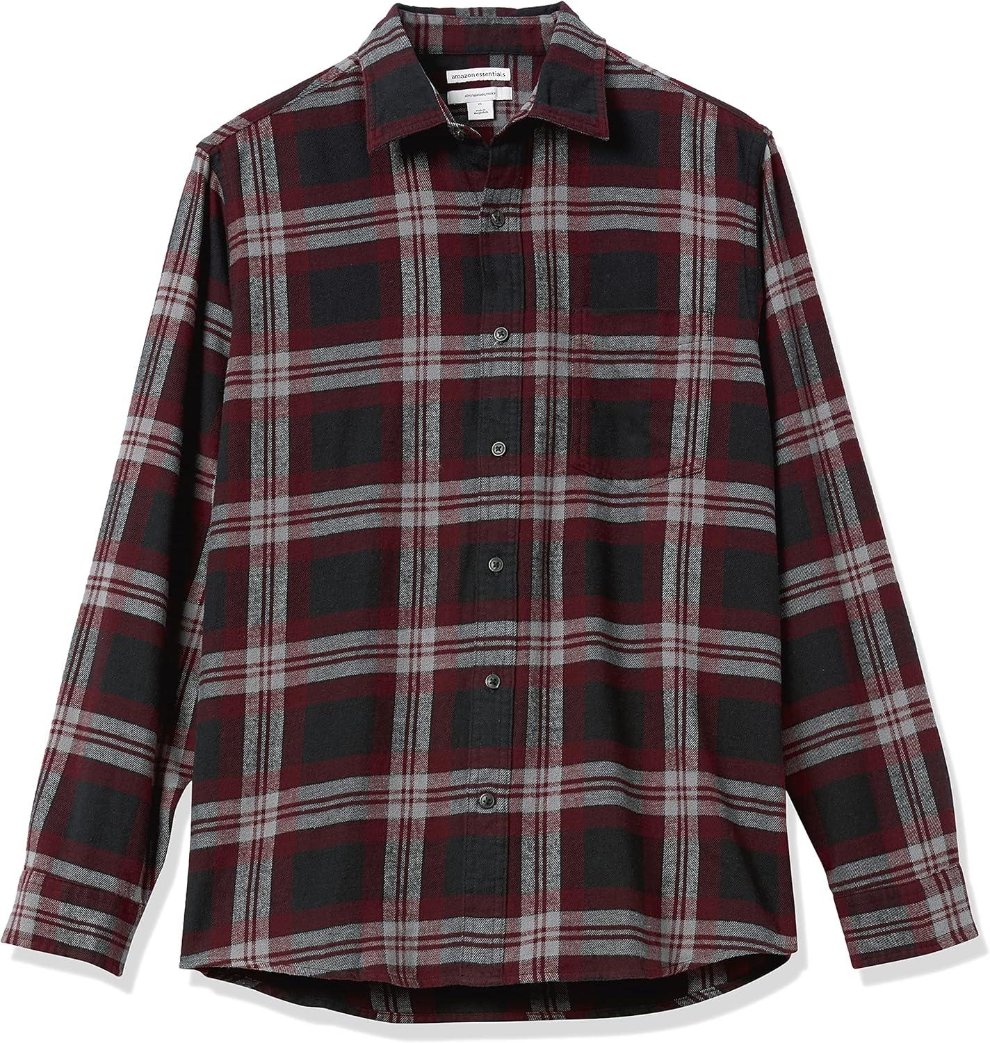 Amazon Essentials Men’s Flannel Shirts Long Sleeve, Slim-Fit Button Down Plaid(Black Burgundy Plaid)