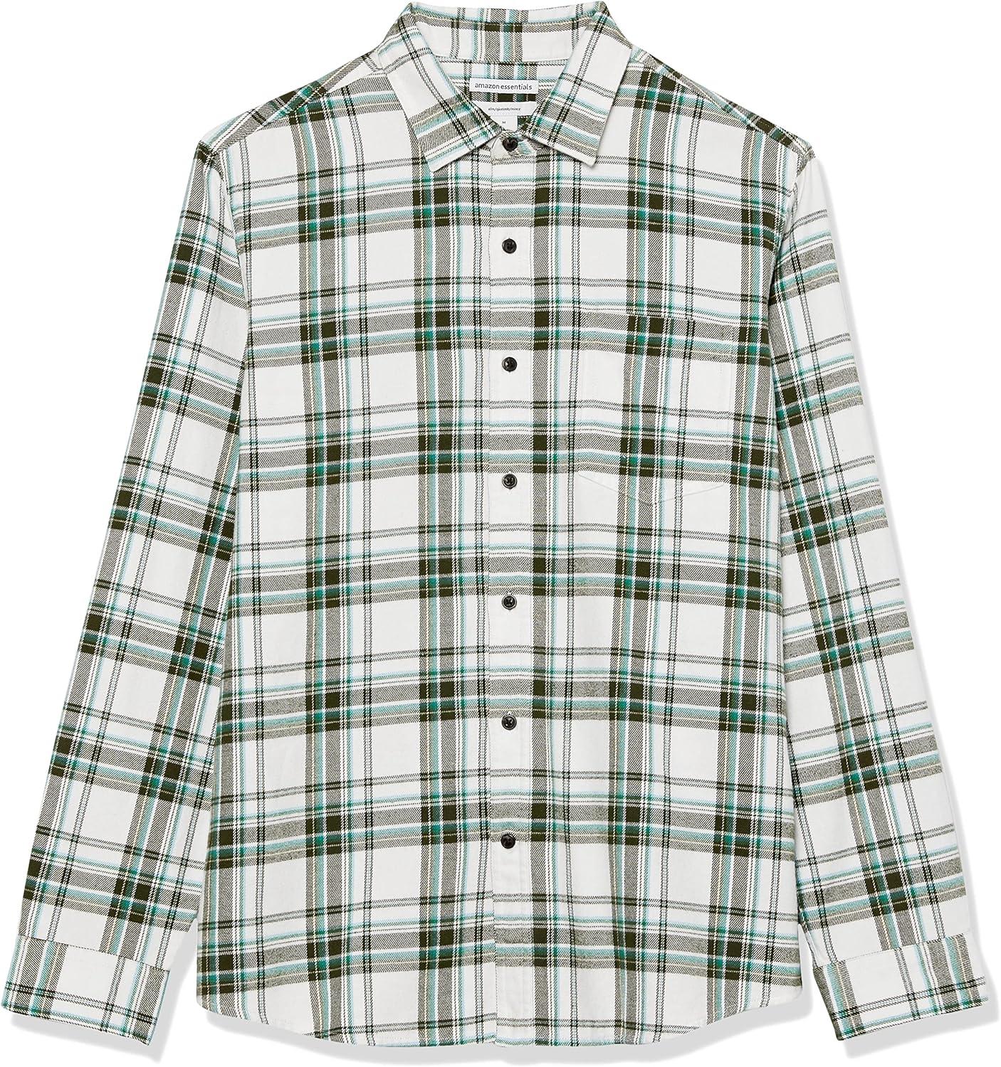 Amazon Essentials Men's Flannel Shirts Long Sleeve, Slim-Fit Button Down Plaid(Green White Plaid)