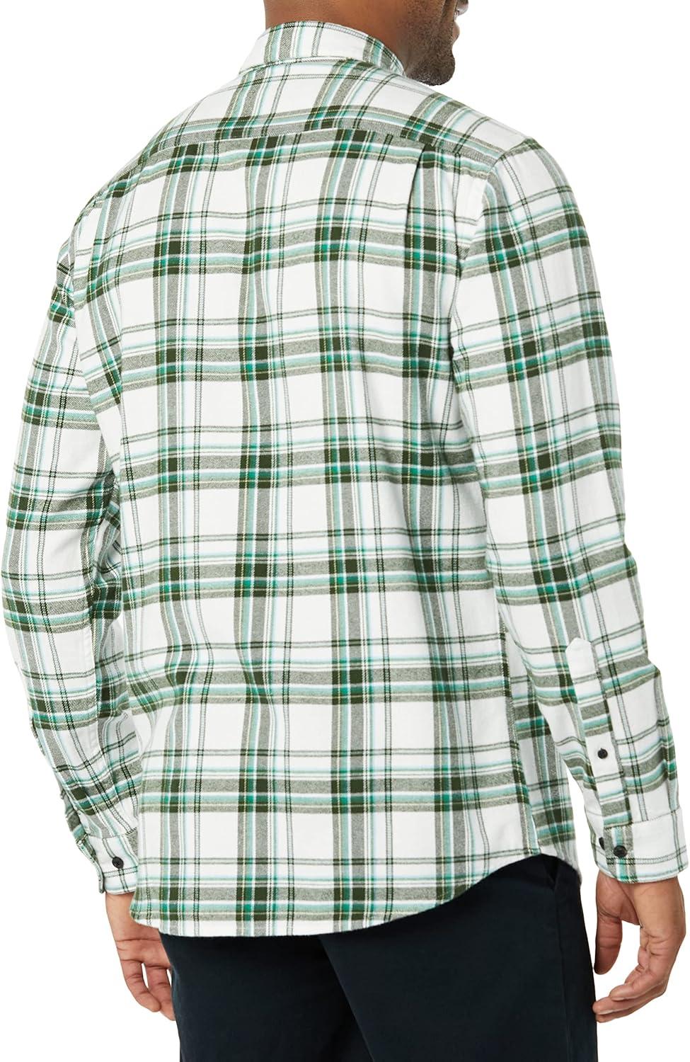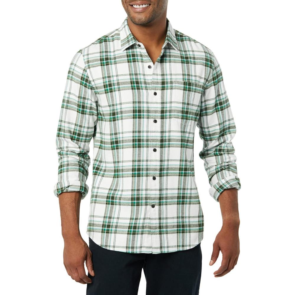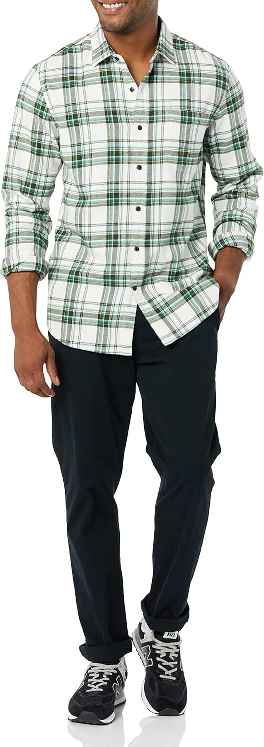 Amazon Essentials Men’s Flannel Shirts Long Sleeve, Slim-Fit Button Down Plaid(Green White Plaid)