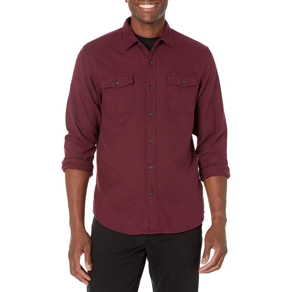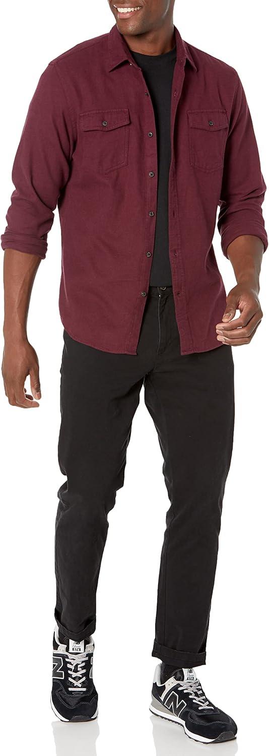 Amazon Essentials Men’s Flannel Shirts, Long-Sleeve, Slim-Fit, Two-Pocket, Plaid(Burgundy Heather)