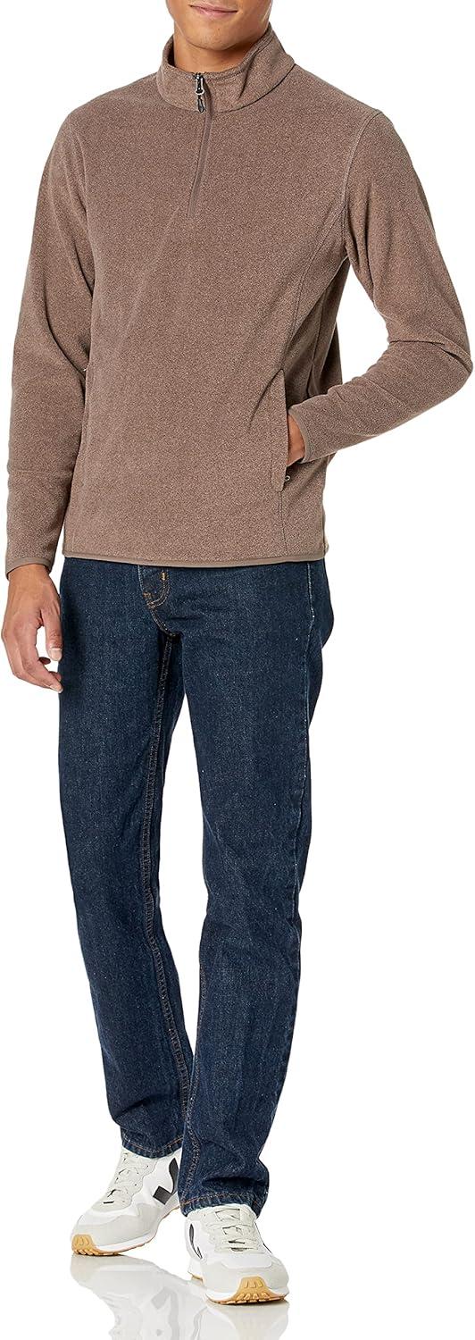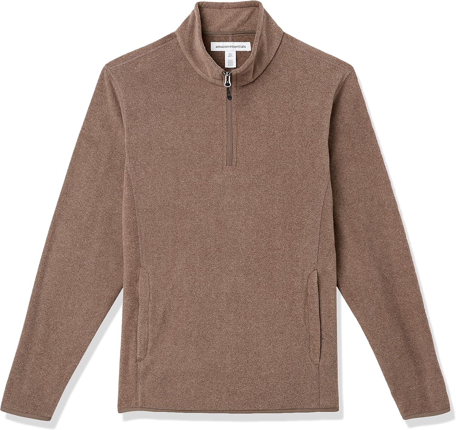 Amazon Essentials Men’s Fleece Jacket, 1/4 Zipper Pullover(Brown Heather)