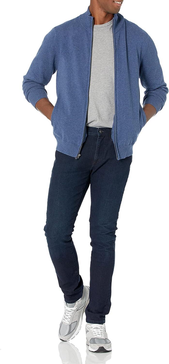 Amazon Essentials Men’s Full-Zip Cotton Sweater(Blue Heather)