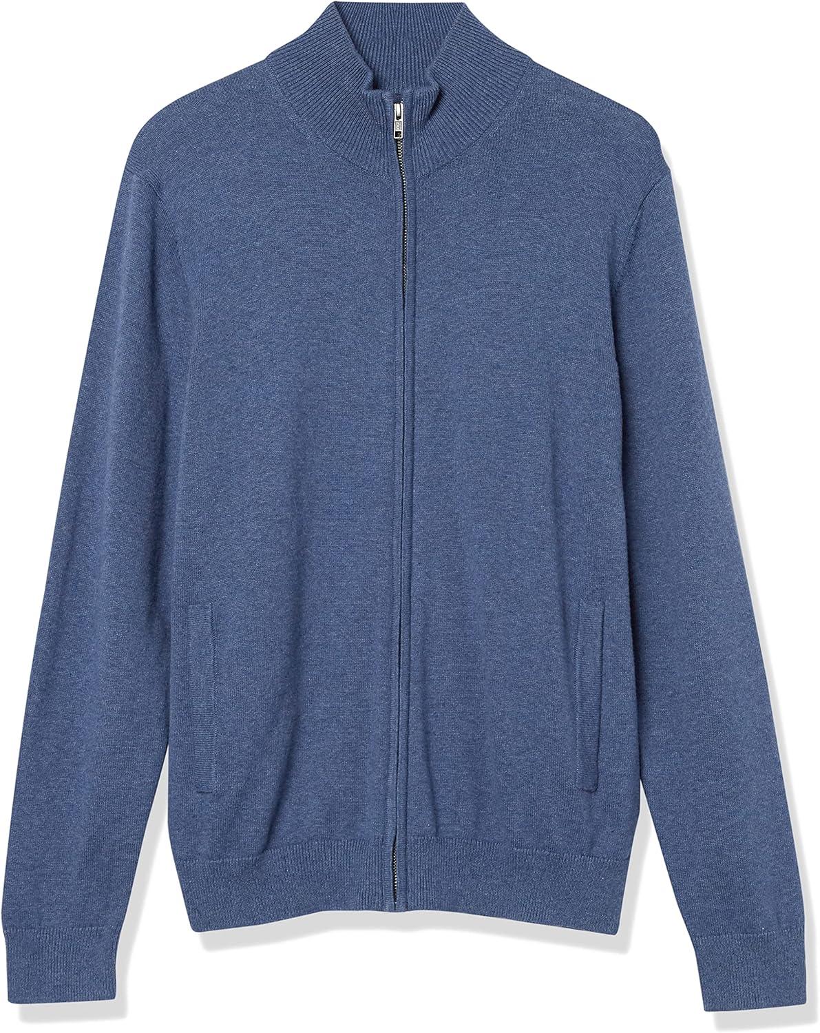 Amazon Essentials Men's Full-Zip Cotton Sweater(Blue Heather)