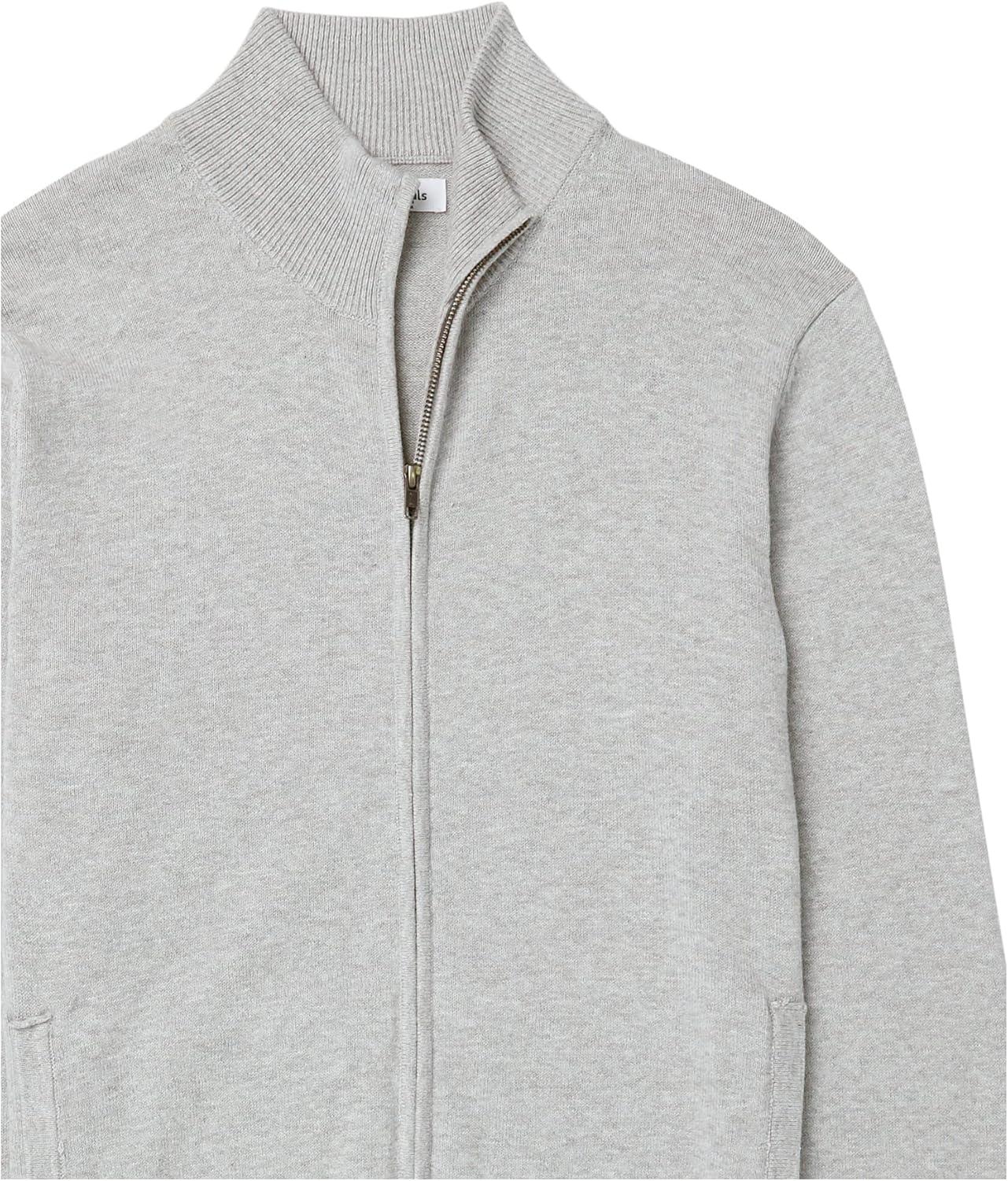 Amazon Essentials Men’s Full-Zip Cotton Sweater(Light Grey Heather)