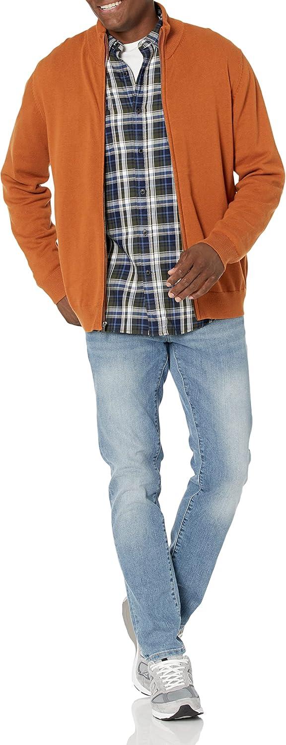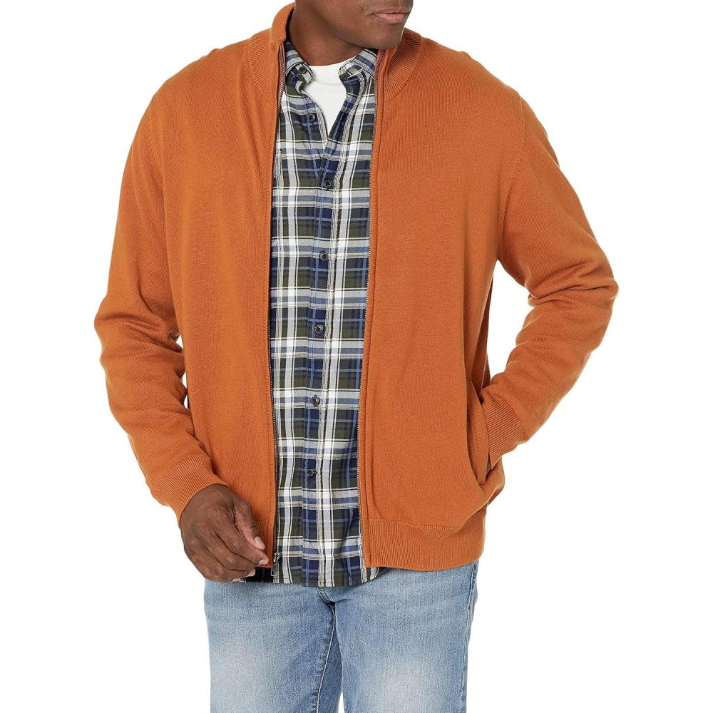 Amazon Essentials Men’s Full-Zip Cotton Sweater(Rust)