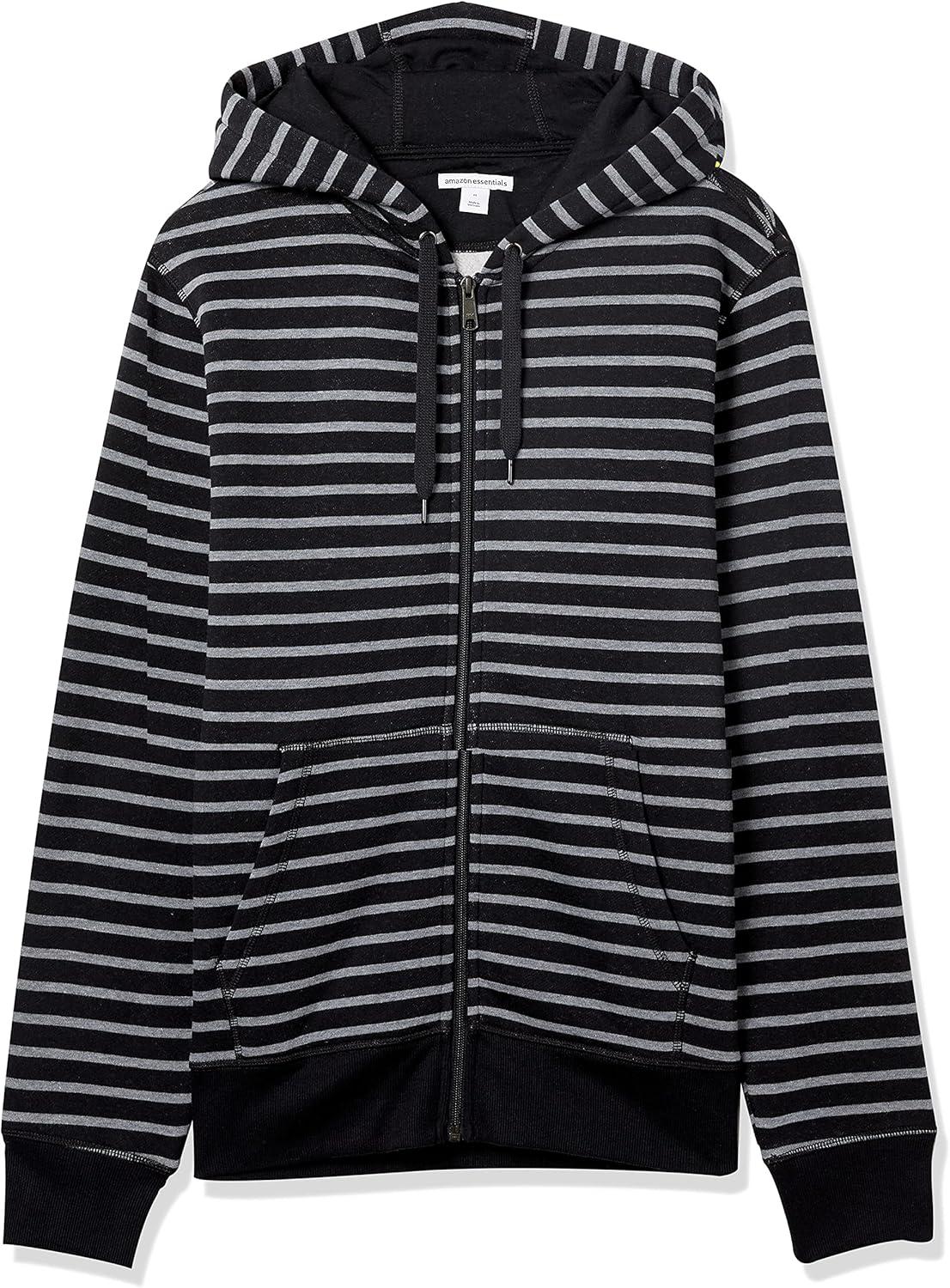 Amazon Essentials Men's Full-Zip Fleece Hoodie (Available in Big & Tall)(Black Grey Stripe)