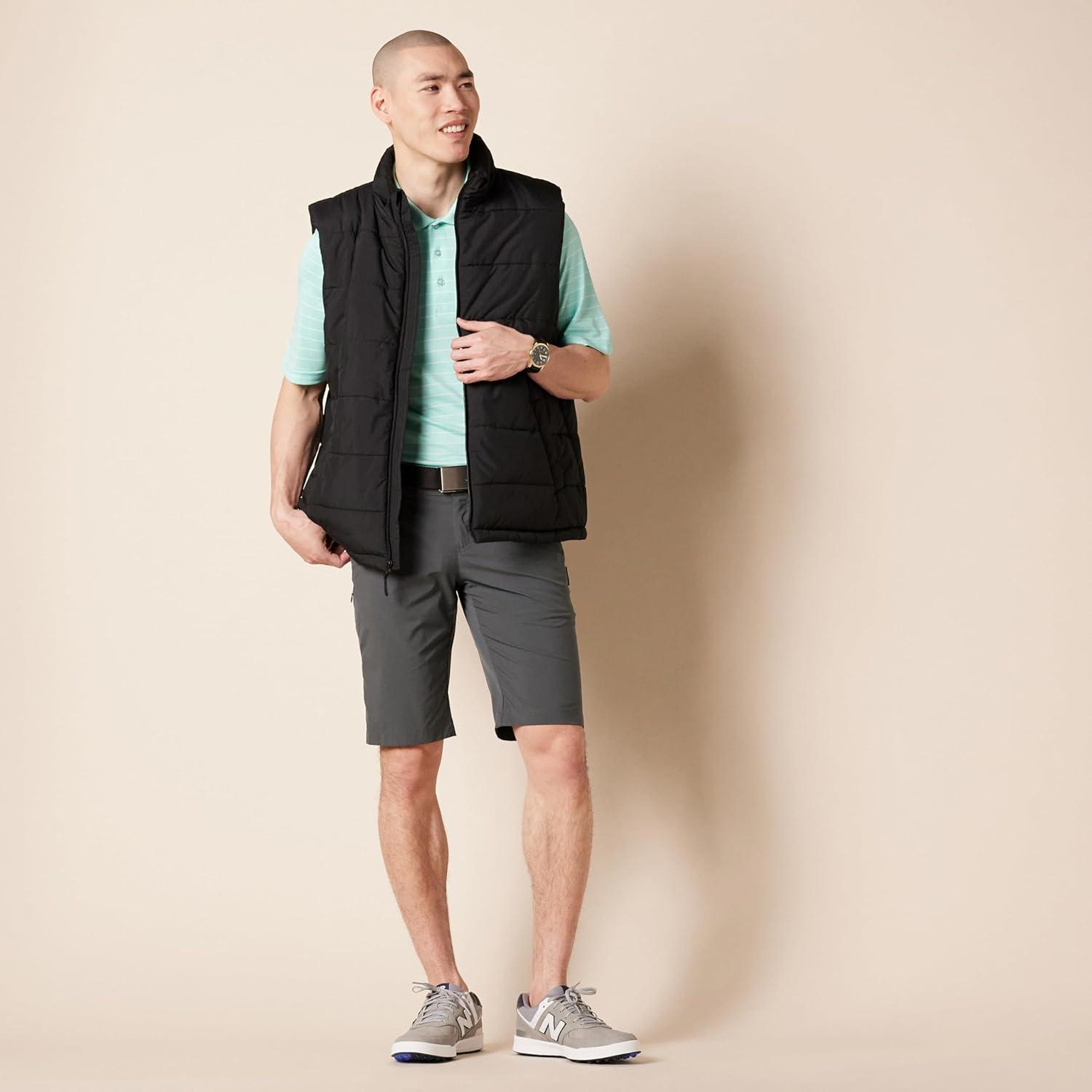 Designed with performance in mind, this polo shirt for men is ideal for both on and off the golf course. Our quick-dry polo shirt for men is made with lightweight, breathable fabric that has moisture-wicking properties. Tailored in a regular fit, this polo shirt provides ease through the shoulders, chest, and waist. Our men's collared short sleeve shirt design is complemented by a flat knit rib trim at the collar and a three-button placket. This athletic polo shirt is ideal for activities beyond golf, such as tennis or hiking. Amazon Essentials is focused on creating affordable, high-quality, and long-lasting everyday clothing you can rely on. Our line of men's must-haves includes polo shirts for men, chino pants, classic-fit shorts, casual button-downs, and crew-neck tees. Our consistent sizing takes the guesswork out of shopping, and each piece is put to the test to maintain the highest standards in quality and comfort
