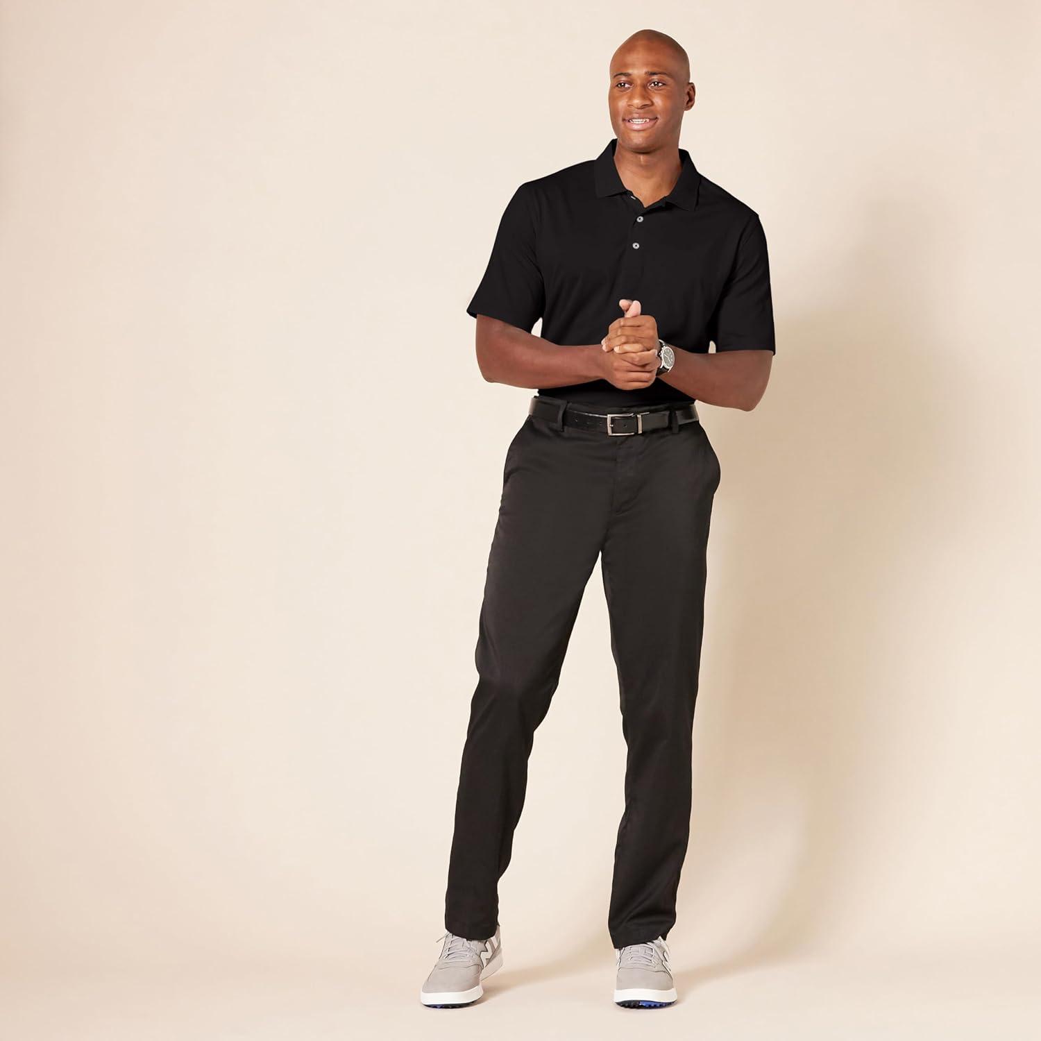 Amazon Essentials Mens Golf Polo Shirt, Moisture-Wicking Quick Dry, Short Sleeve(Black)