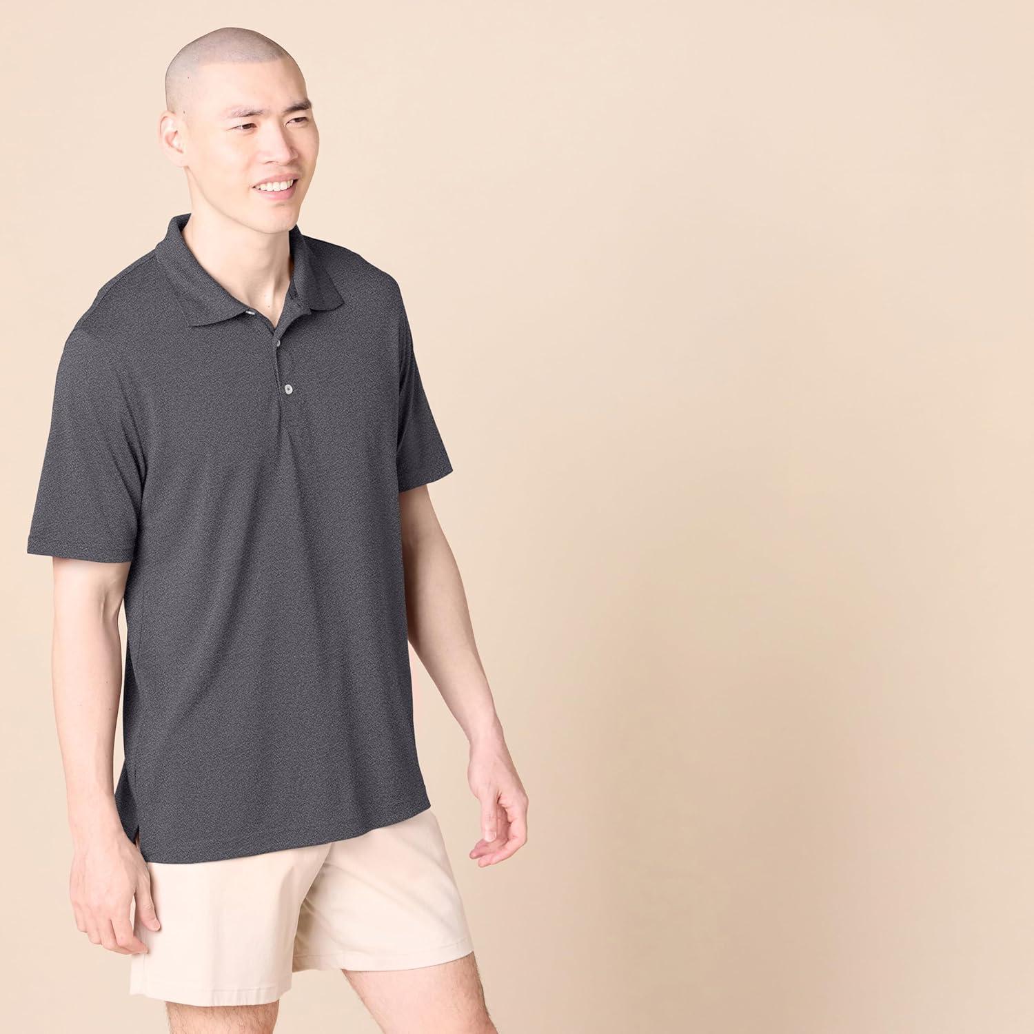 Amazon Essentials Mens Golf Polo Shirt, Moisture-Wicking Quick Dry, Short Sleeve(Dark Grey Heather)
