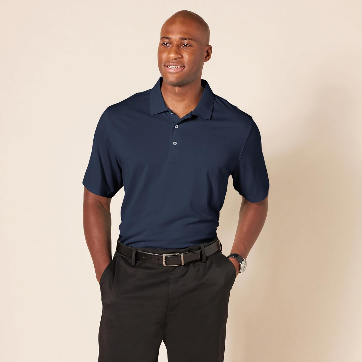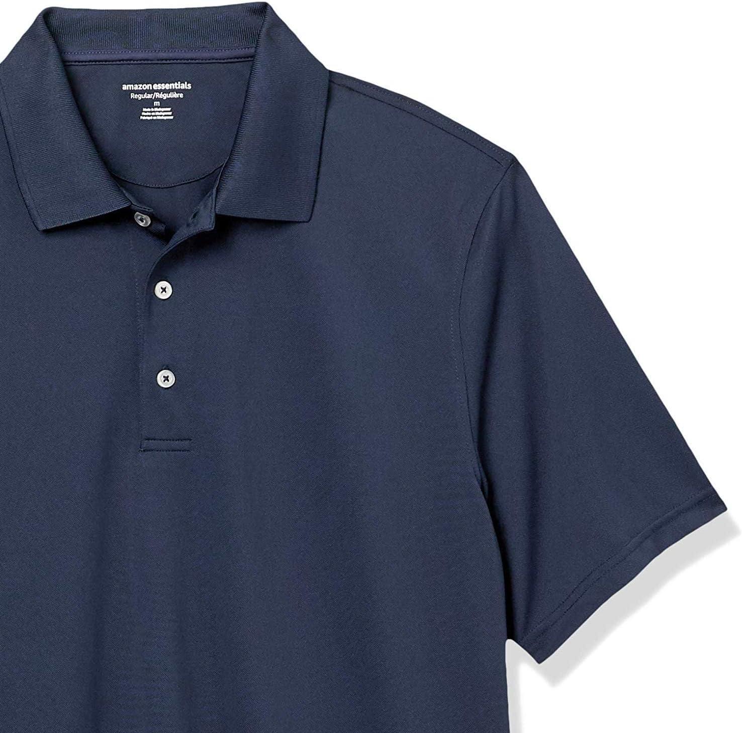 Designed with performance in mind, this polo shirt for men is ideal for both on and off the golf course. Our quick-dry polo shirt for men is made with lightweight, breathable fabric that has moisture-wicking properties. Tailored in a regular fit, this polo shirt provides ease through the shoulders, chest, and waist. Our men's collared short sleeve shirt design is complemented by a flat knit rib trim at the collar and a three-button placket. This athletic polo shirt is ideal for activities beyond golf, such as tennis or hiking. Amazon Essentials is focused on creating affordable, high-quality, and long-lasting everyday clothing you can rely on. Our line of men's must-haves includes polo shirts for men, chino pants, classic-fit shorts, casual button-downs, and crew-neck tees. Our consistent sizing takes the guesswork out of shopping, and each piece is put to the test to maintain the highest standards in quality and comfort