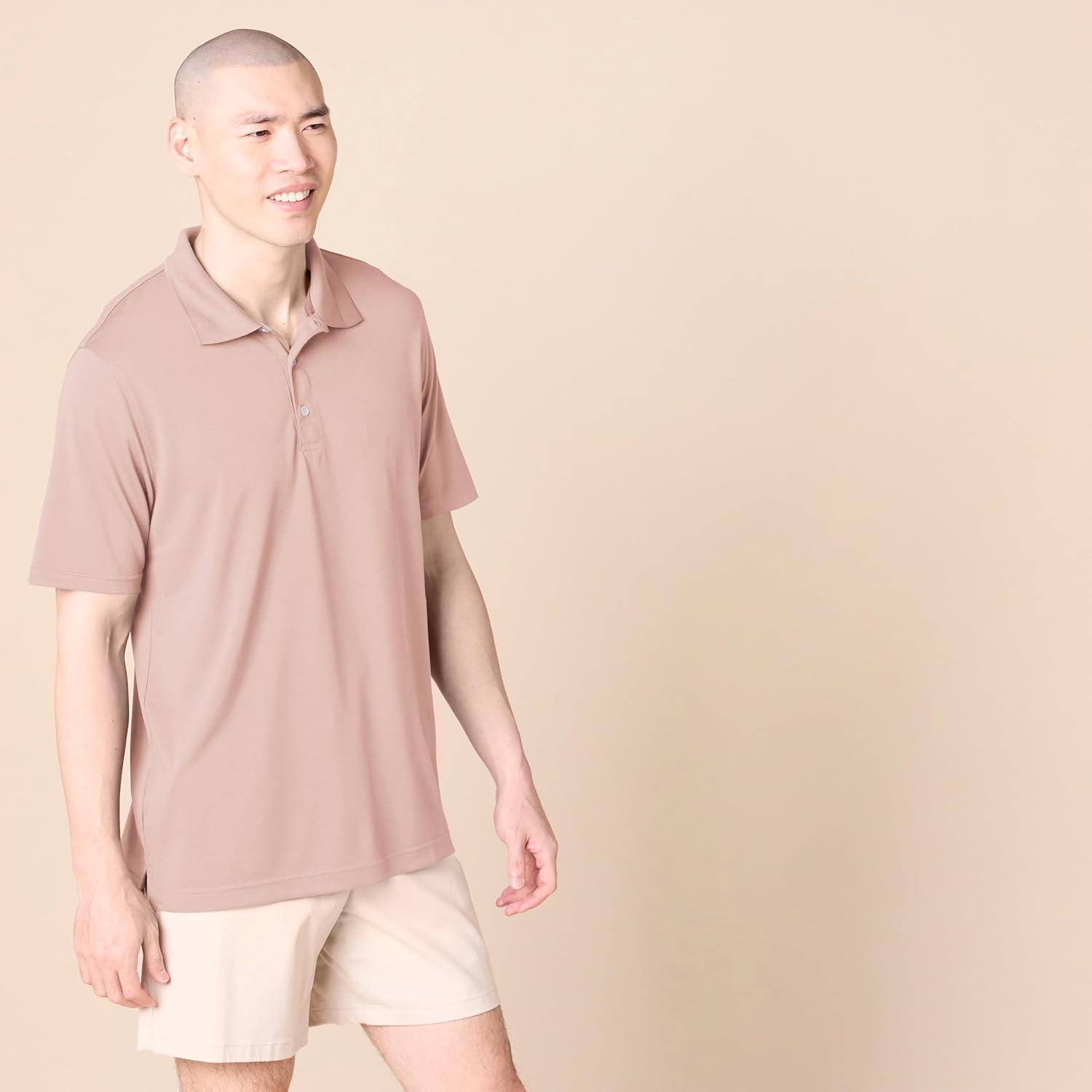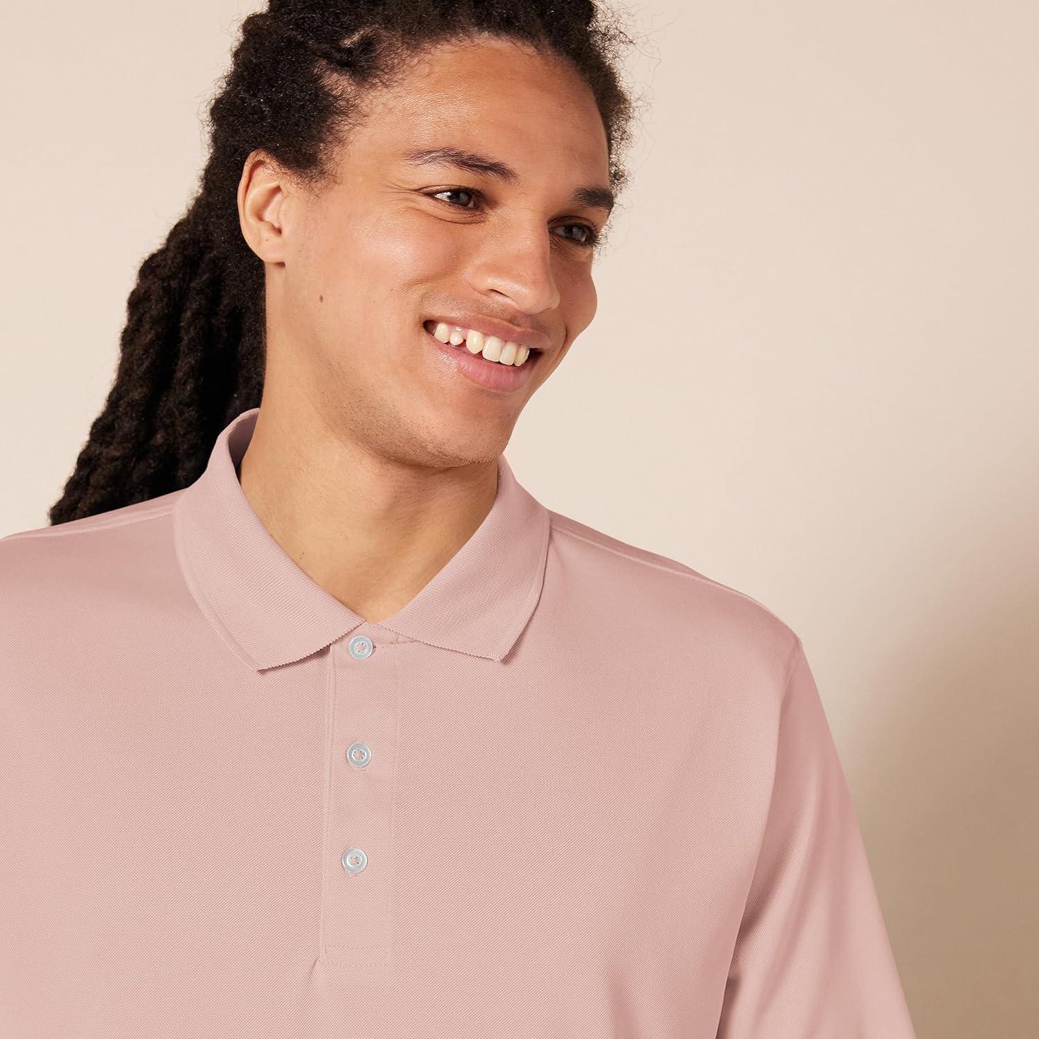 Amazon Essentials Mens Golf Polo Shirt, Moisture-Wicking Quick Dry, Short Sleeve(Light Pink)