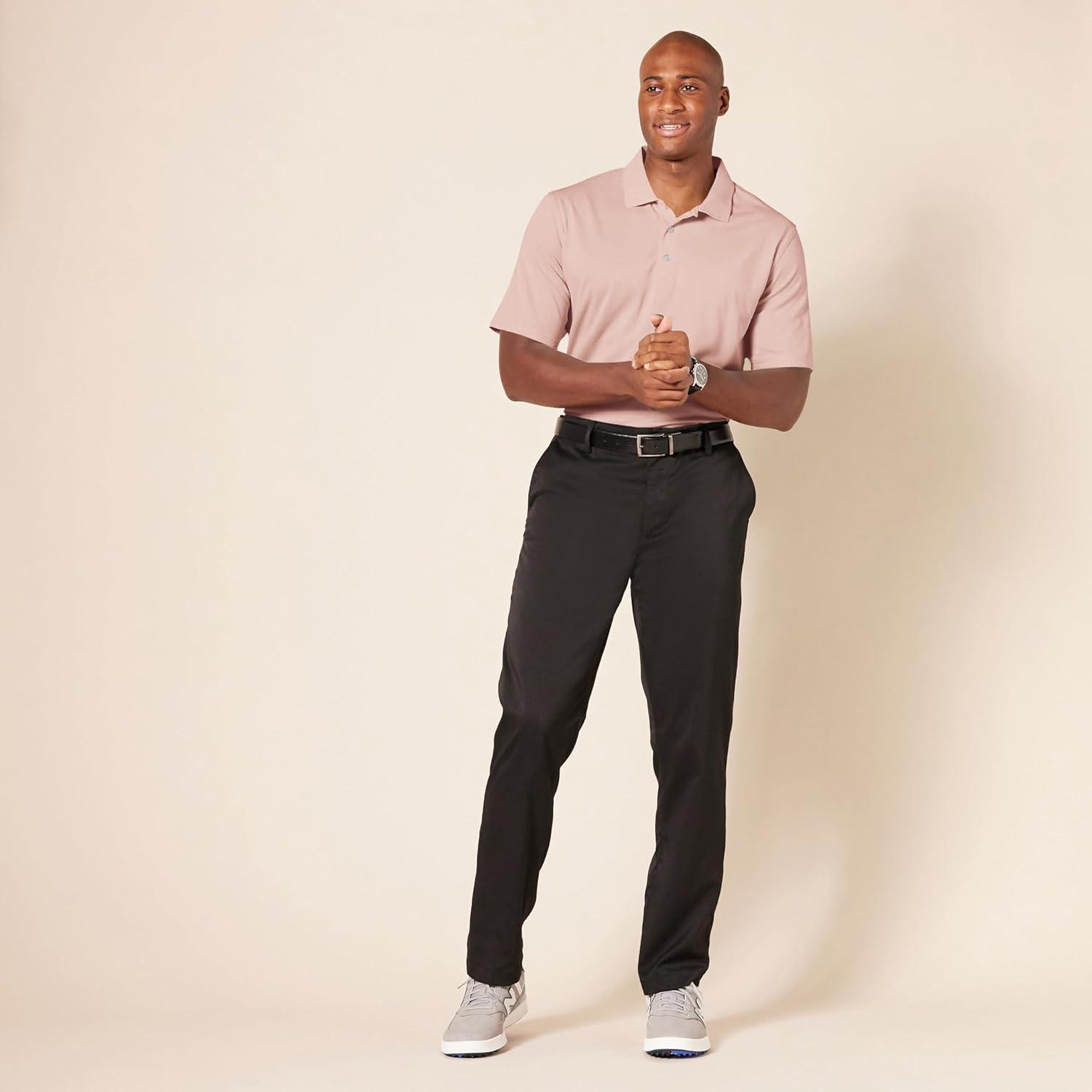 Designed with performance in mind, this polo shirt for men is ideal for both on and off the golf course. Our quick-dry polo shirt for men is made with lightweight, breathable fabric that has moisture-wicking properties. Tailored in a regular fit, this polo shirt provides ease through the shoulders, chest, and waist. Our men's collared short sleeve shirt design is complemented by a flat knit rib trim at the collar and a three-button placket. This athletic polo shirt is ideal for activities beyond golf, such as tennis or hiking. Amazon Essentials is focused on creating affordable, high-quality, and long-lasting everyday clothing you can rely on. Our line of men's must-haves includes polo shirts for men, chino pants, classic-fit shorts, casual button-downs, and crew-neck tees. Our consistent sizing takes the guesswork out of shopping, and each piece is put to the test to maintain the highest standards in quality and comfort