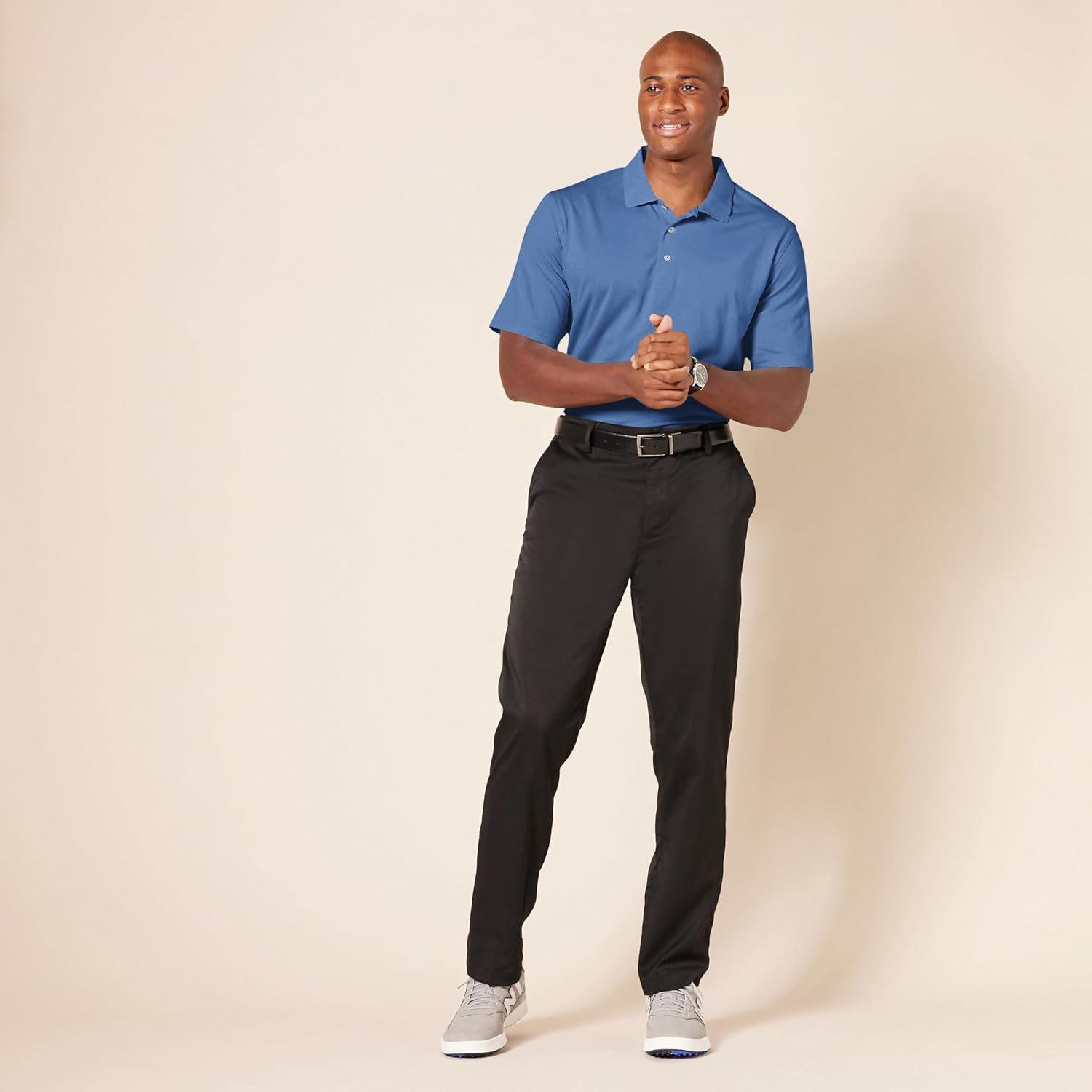 Designed with performance in mind, this polo shirt for men is ideal for both on and off the golf course. Our quick-dry polo shirt for men is made with lightweight, breathable fabric that has moisture-wicking properties. Tailored in a regular fit, this polo shirt provides ease through the shoulders, chest, and waist. Our men's collared short sleeve shirt design is complemented by a flat knit rib trim at the collar and a three-button placket. This athletic polo shirt is ideal for activities beyond golf, such as tennis or hiking. Amazon Essentials is focused on creating affordable, high-quality, and long-lasting everyday clothing you can rely on. Our line of men's must-haves includes polo shirts for men, chino pants, classic-fit shorts, casual button-downs, and crew-neck tees. Our consistent sizing takes the guesswork out of shopping, and each piece is put to the test to maintain the highest standards in quality and comfort