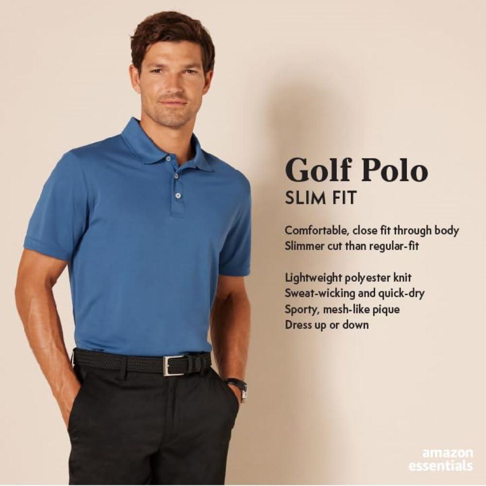 The Amazon Essentials Men's Slim-Fit Quick-Dry Golf Polo Shirt is crafted with high-quality, recycled polyester material, and offers exceptional breathability. The slim fit design provides a silhouette that fits close to the body. With features such as a flat knit rib trim collar, a three-button placket, and strategically placed side vents, this polo is both comfortable and stylish. From golf polos to casual outings, this quick-dry polo shirt adapts to any setting.