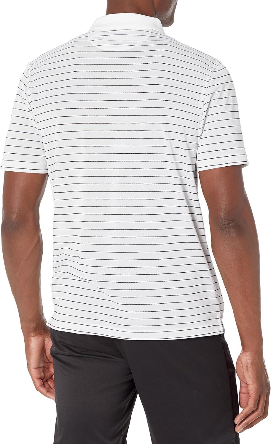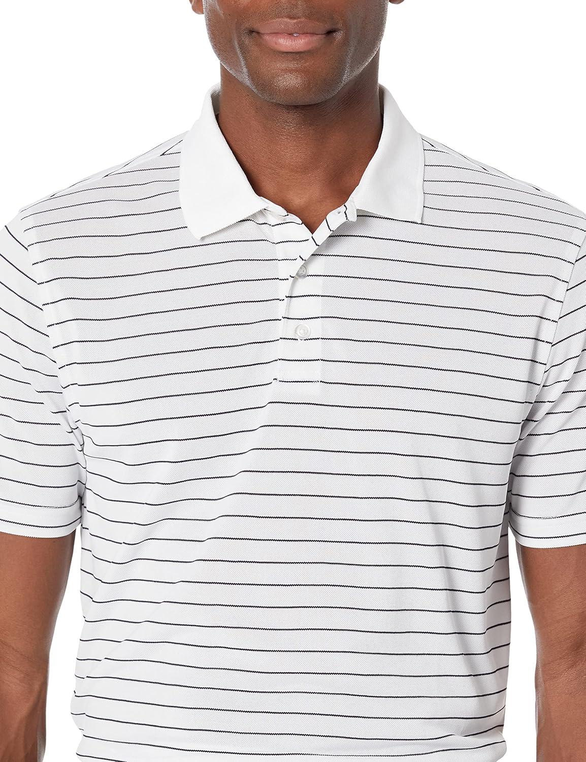 Amazon Essentials Men’s Golf Polo Shirt, Short Sleeve, Slim-Fit, Quick-Dry(White Stripe)