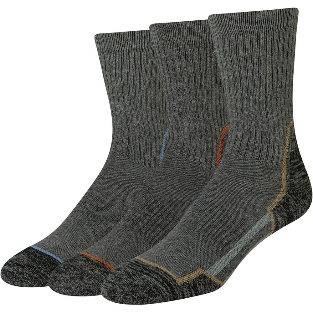 Designed specifically for those who enjoy summer hikes, these hiking socks for men offer great comfort and fit, sitting below the calf to avoid bulkiness. The smooth toe construction eliminates annoying seams, providing a snug fit that lasts all day. Crafted from a high-quality cotton-poly blend with elastane, these men's socks are built to keep your feet dry and comfortable through all of your adventures. Available in versatile colors, these socks not only perform but also provide style and versatility. Each pack includes three pairs of socks, each featuring specialized arch support, comfort toe seam, and reinforced heel and toe for unparalleled durability. Invest in reliability and style with these dependable, cushioned men's socks designed to enhance your daily comfort.