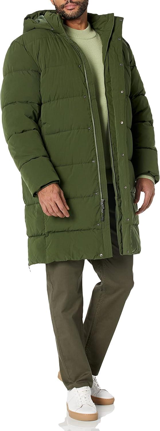 Amazon Essentials Men's Hooded Long Puffer Coat(Dark Olive)