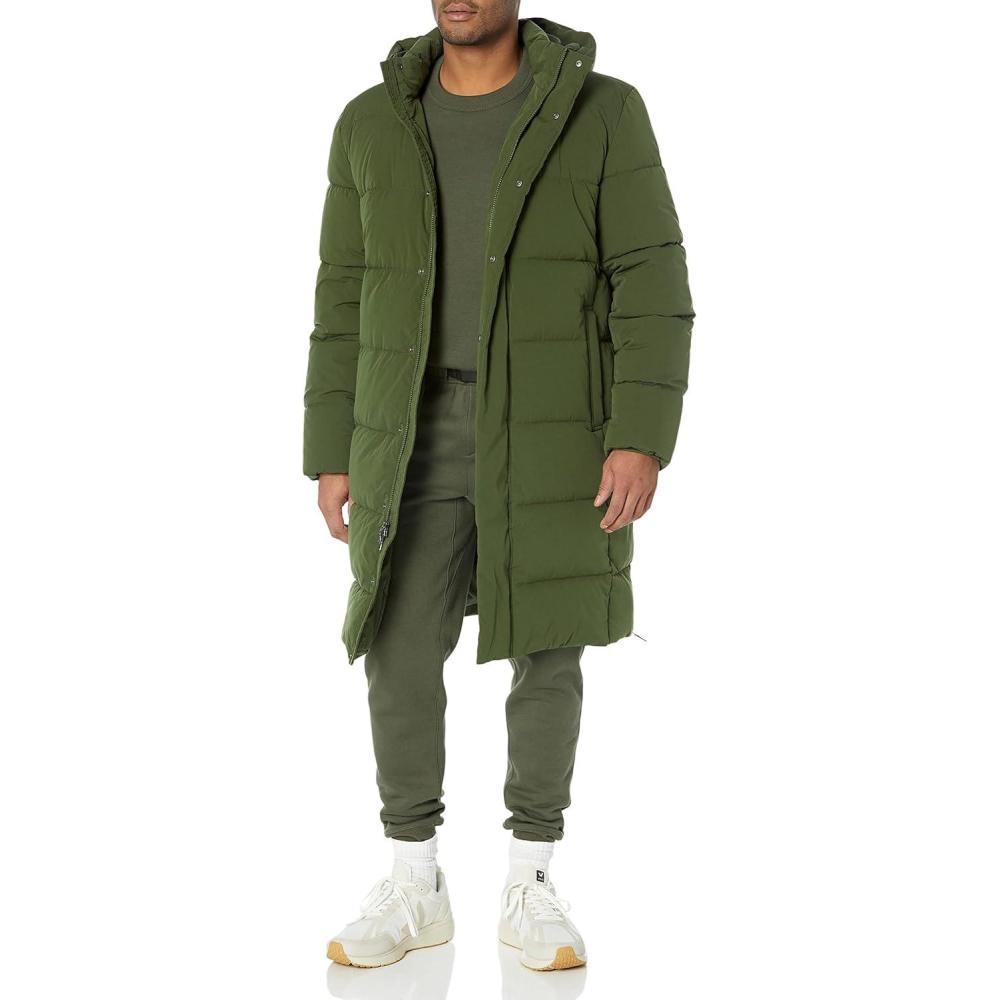 Amazon Essentials Men’s Hooded Long Puffer Coat(Dark Olive)