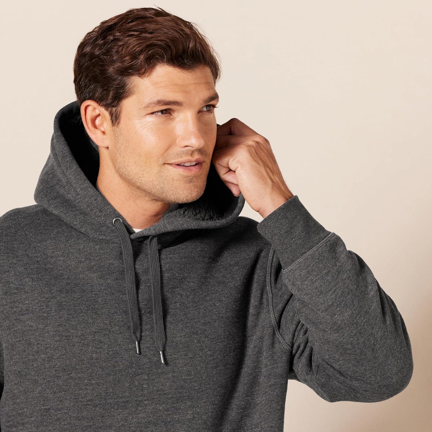 Amazon Essentials Men’s Hoodies, Sherpa-Lined Pullover(Charcoal Heather)