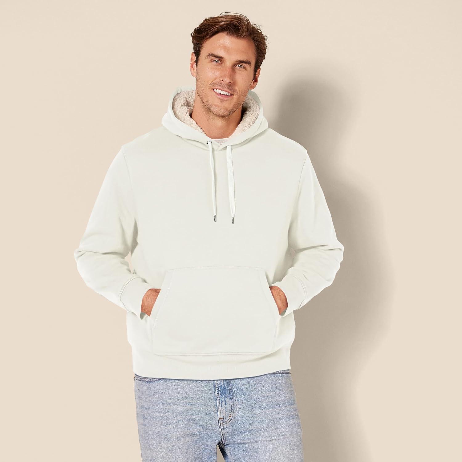 Amazon Essentials Men’s Hoodies, Sherpa-Lined Pullover(Off-white)
