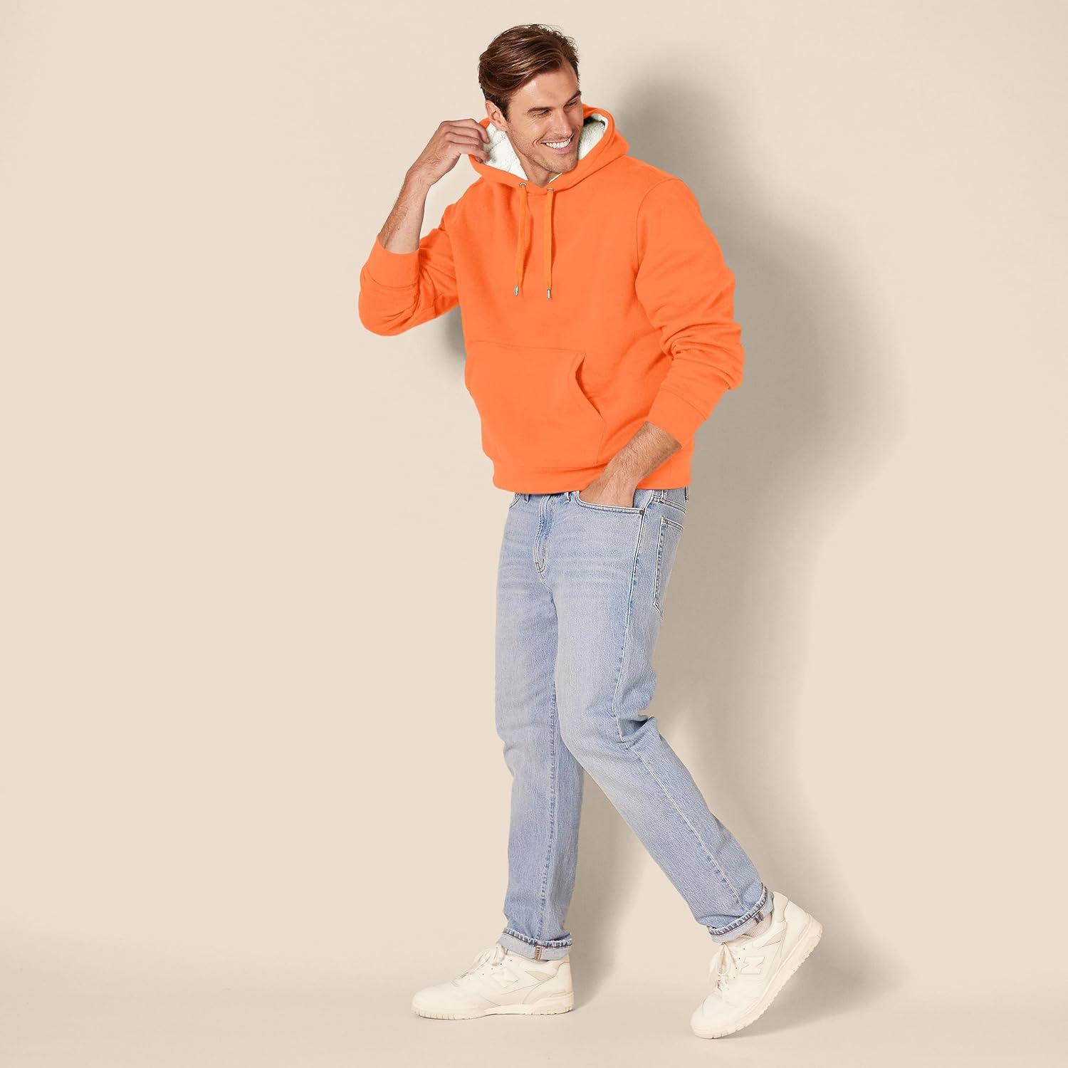 Amazon Essentials Men’s Hoodies, Sherpa-Lined Pullover(Orange)