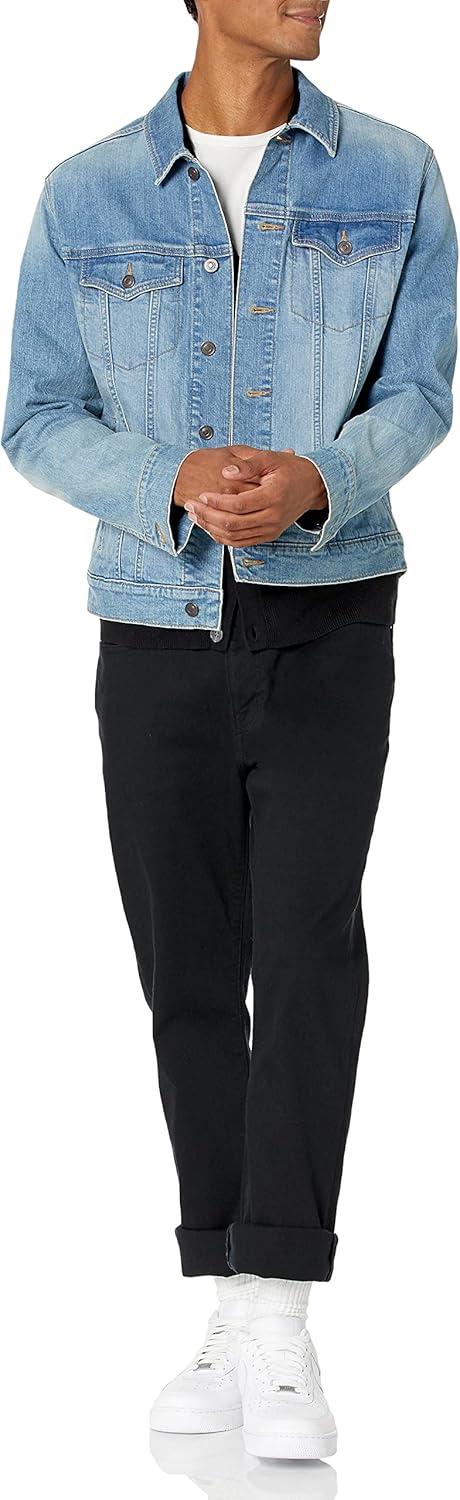 These slim jeans for men offer a flattering slim fit through the hip and thigh with a bootcut leg opening. Tailored for those seeking a slim fit, these jeans sit comfortably at the waist, providing a sleek and contemporary silhouette. Crafted from mid-weight cotton denim, these bootcut jeans have a hint of stretch, providing flexibility and comfort for all-day wear and are ideal for both business casual settings and everyday wear. With a classic five-pocket design and thoughtful details such as a zippered fly, metal shank button closure, and rivets at the front hand pockets, these jeans for men allow for functionality without sacrificing style. Opt for these versatile men's bootcut jeans for a timeless, lived-in look. For an extended garment life, it is recommended to hang them to dry after washing