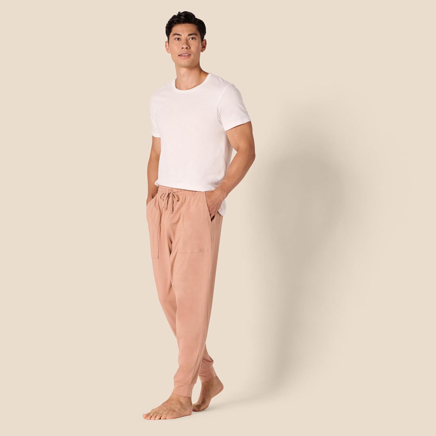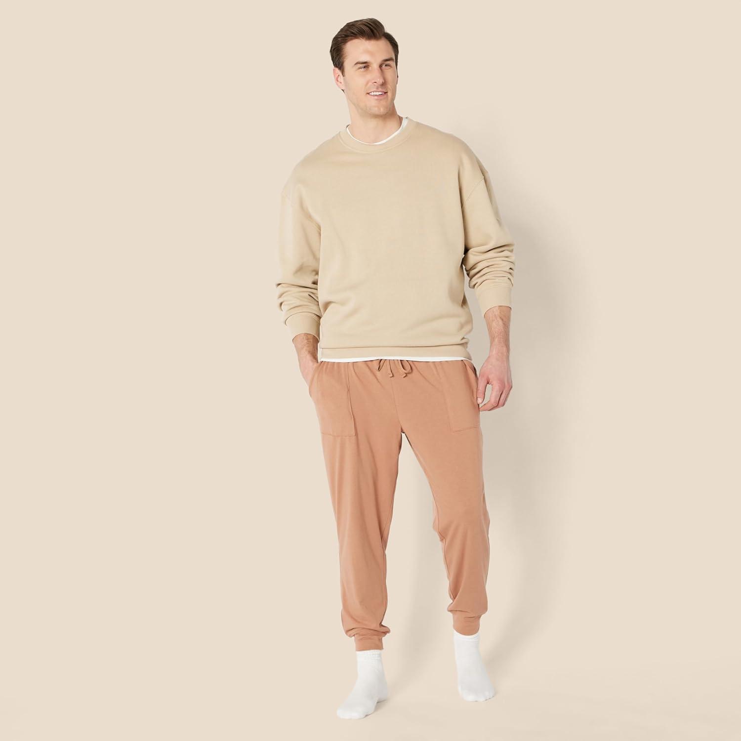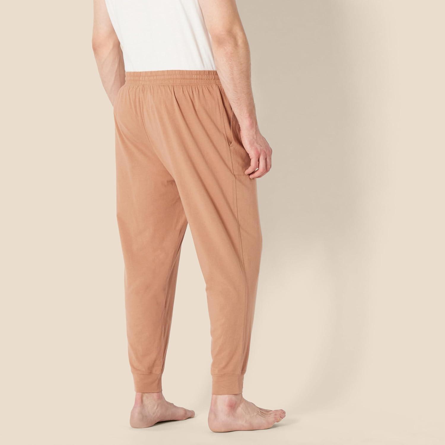 Amazon Essentials Men’s Knit Cotton Blend Jogger Pajama Pants(Light Brown)
