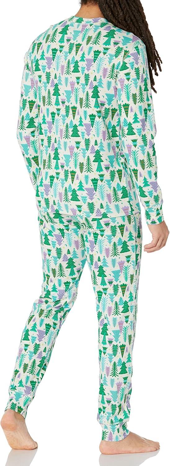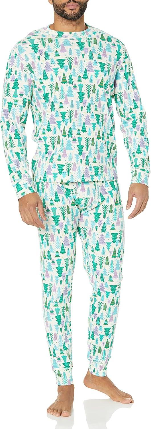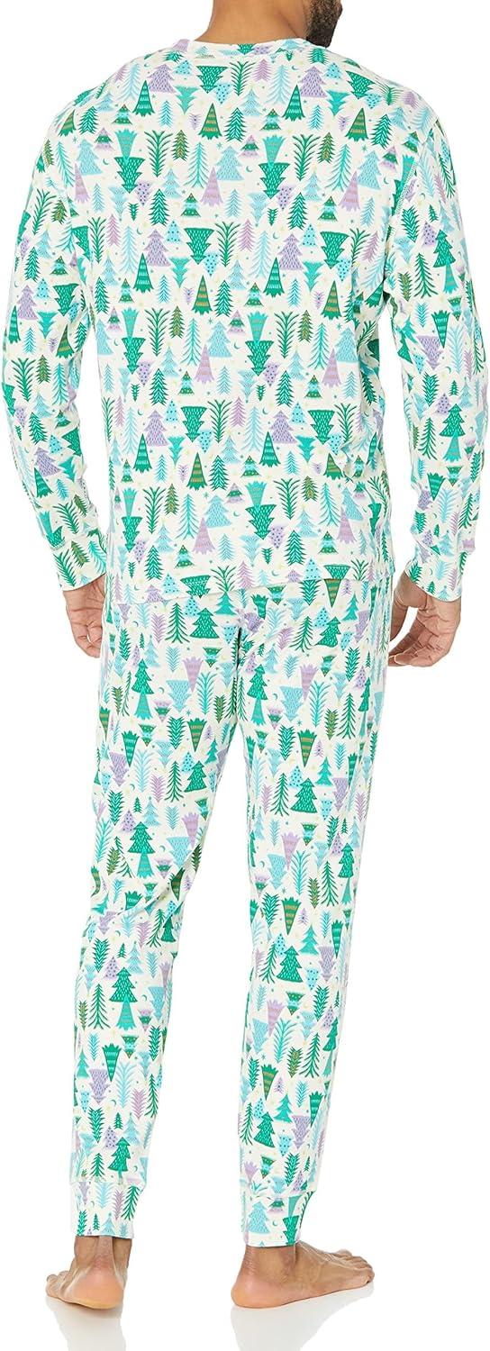 Amazon Essentials Men’s Knit Pajama Set(Ecru Festive Tree)