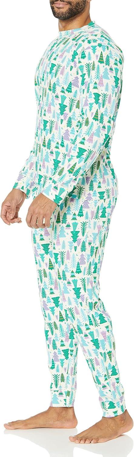 Amazon Essentials Men's Knit Pajama Set(Ecru Festive Tree)