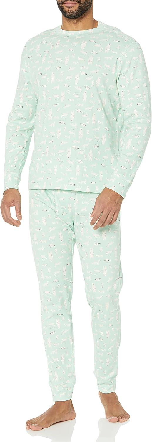 Amazon Essentials Men’s Knit Pajama Set(Mint Green Forest Animals)