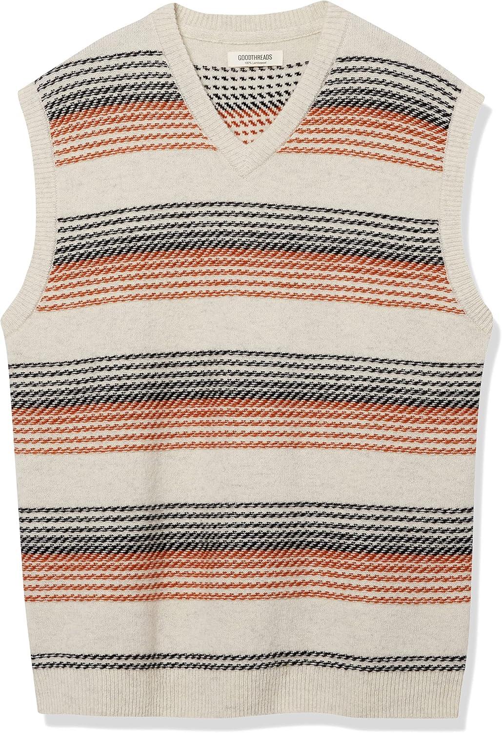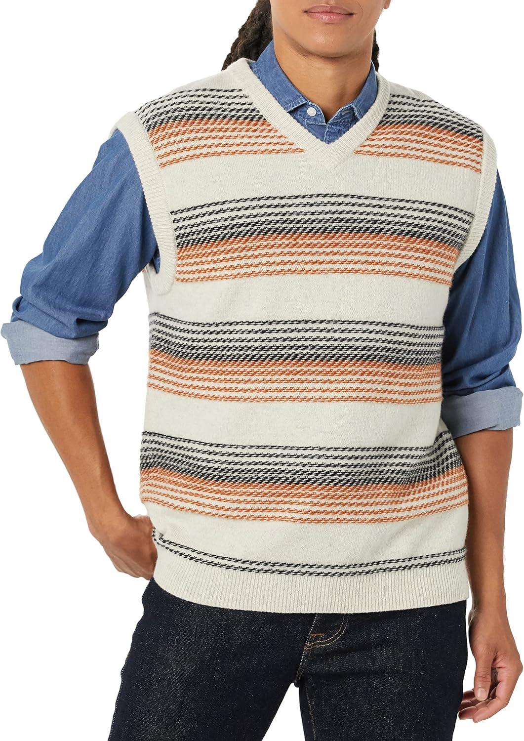 Amazon Essentials Men’s Lambs Wool Sweater Vest (Previously Goodthreads)(Oatmeal Heather Fair Isle)