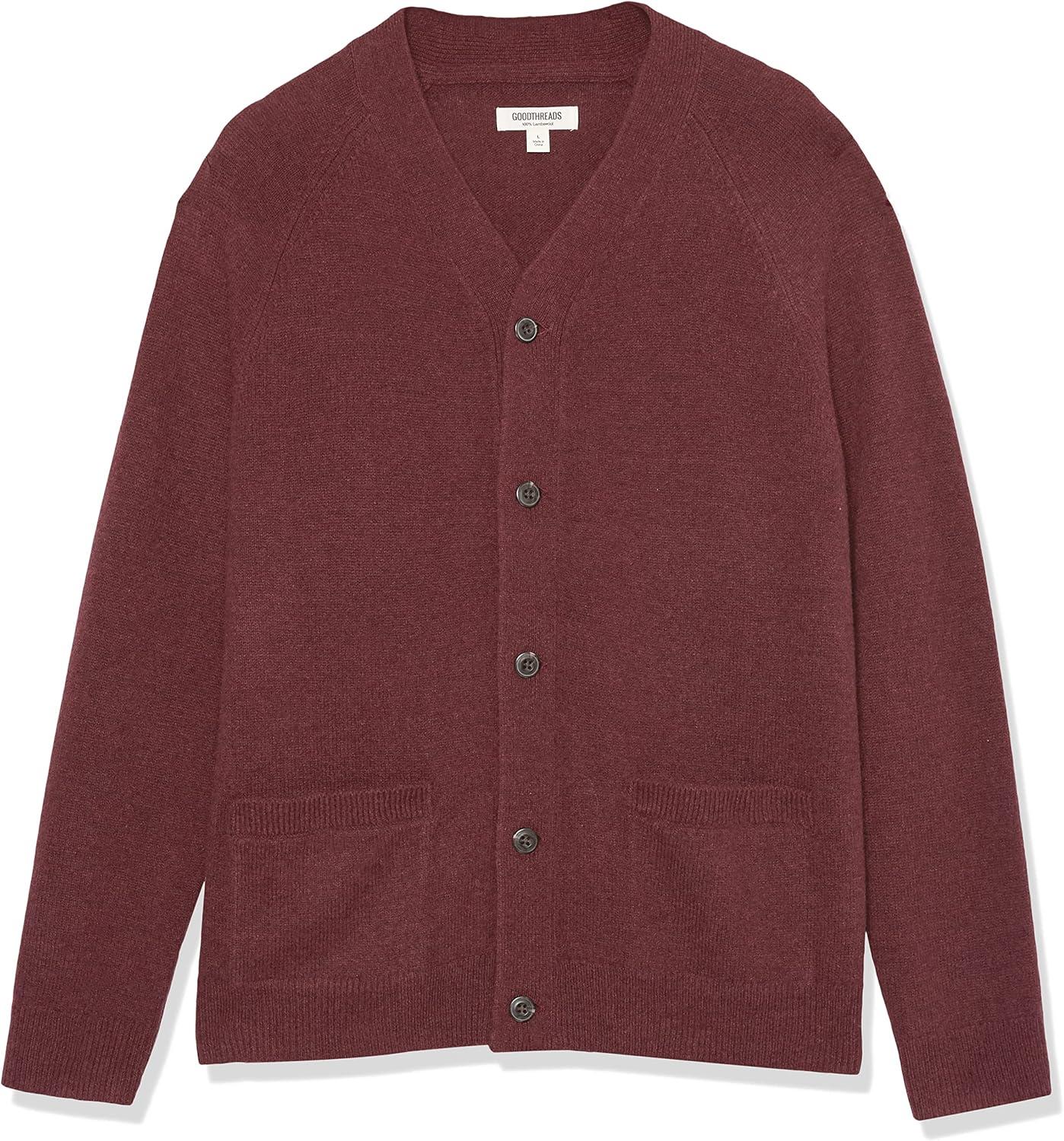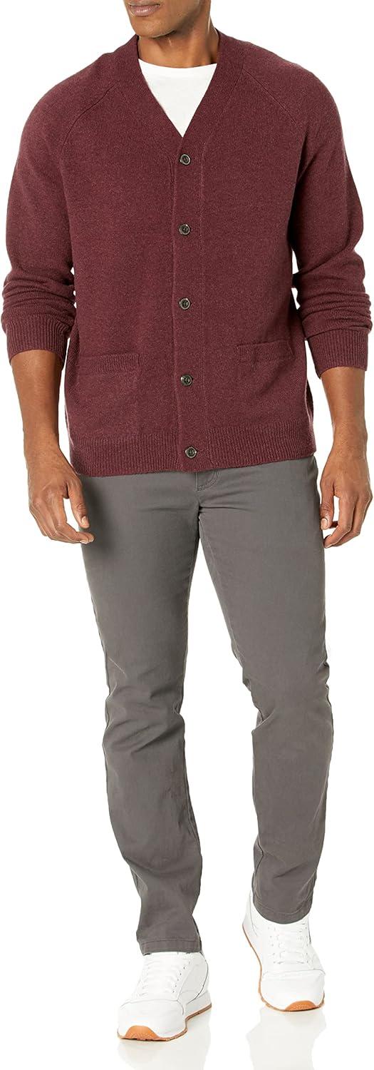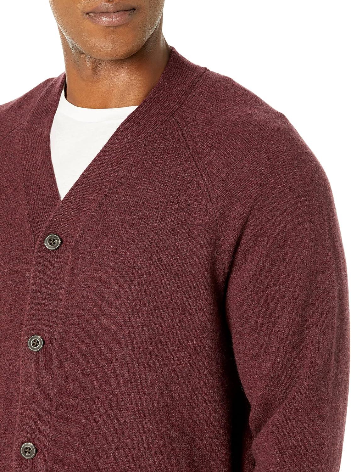 Amazon Essentials Mens Lambs Wool V-Neck Cardigan Sweater with Pockets (Previously Goodthreads)(Burgundy)