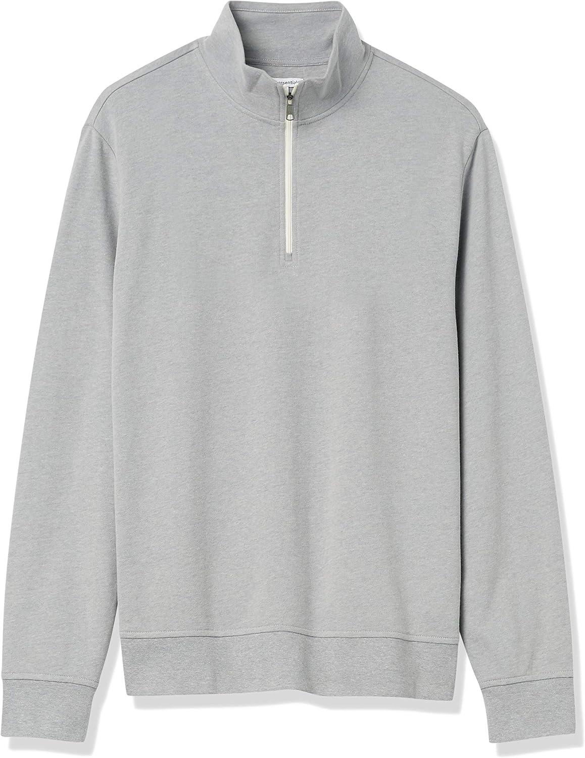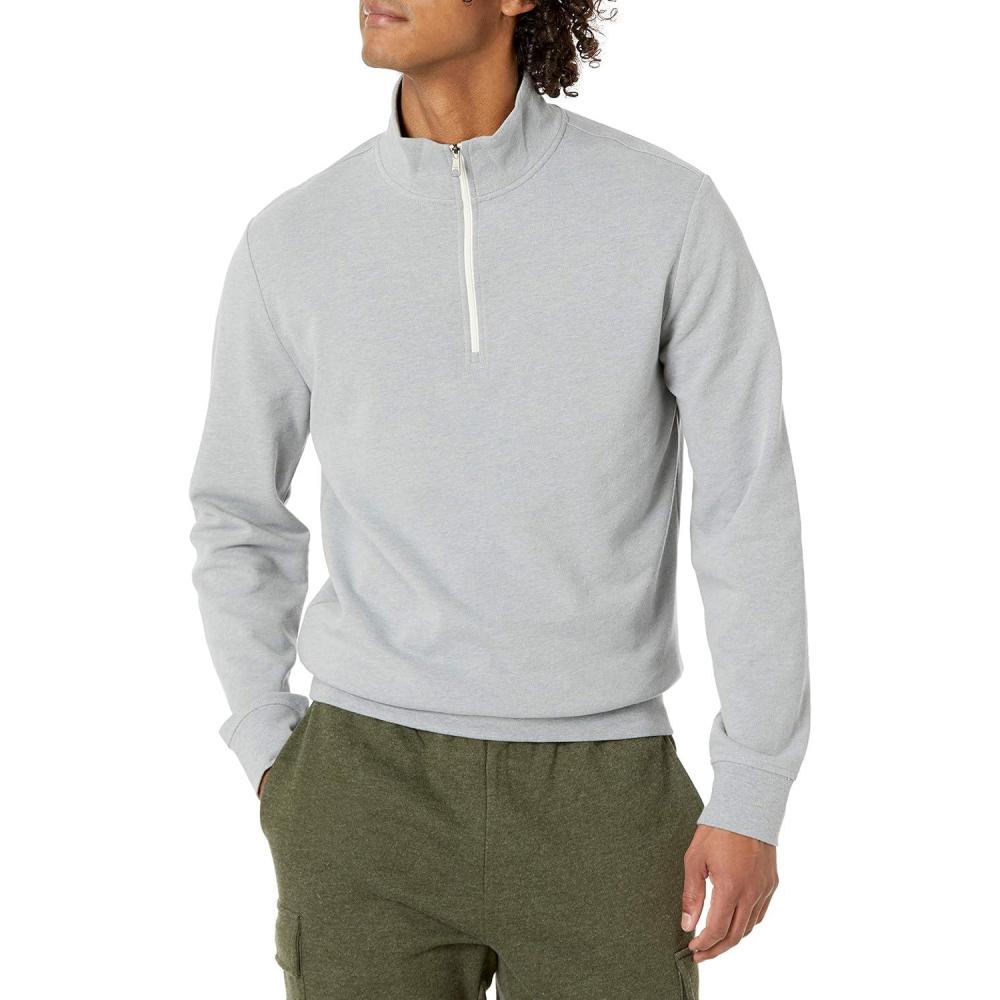 Amazon Essentials Men’s Lightweight French Terry Quarter-Zip Mock Neck Sweatshirt(Light Grey Heather)