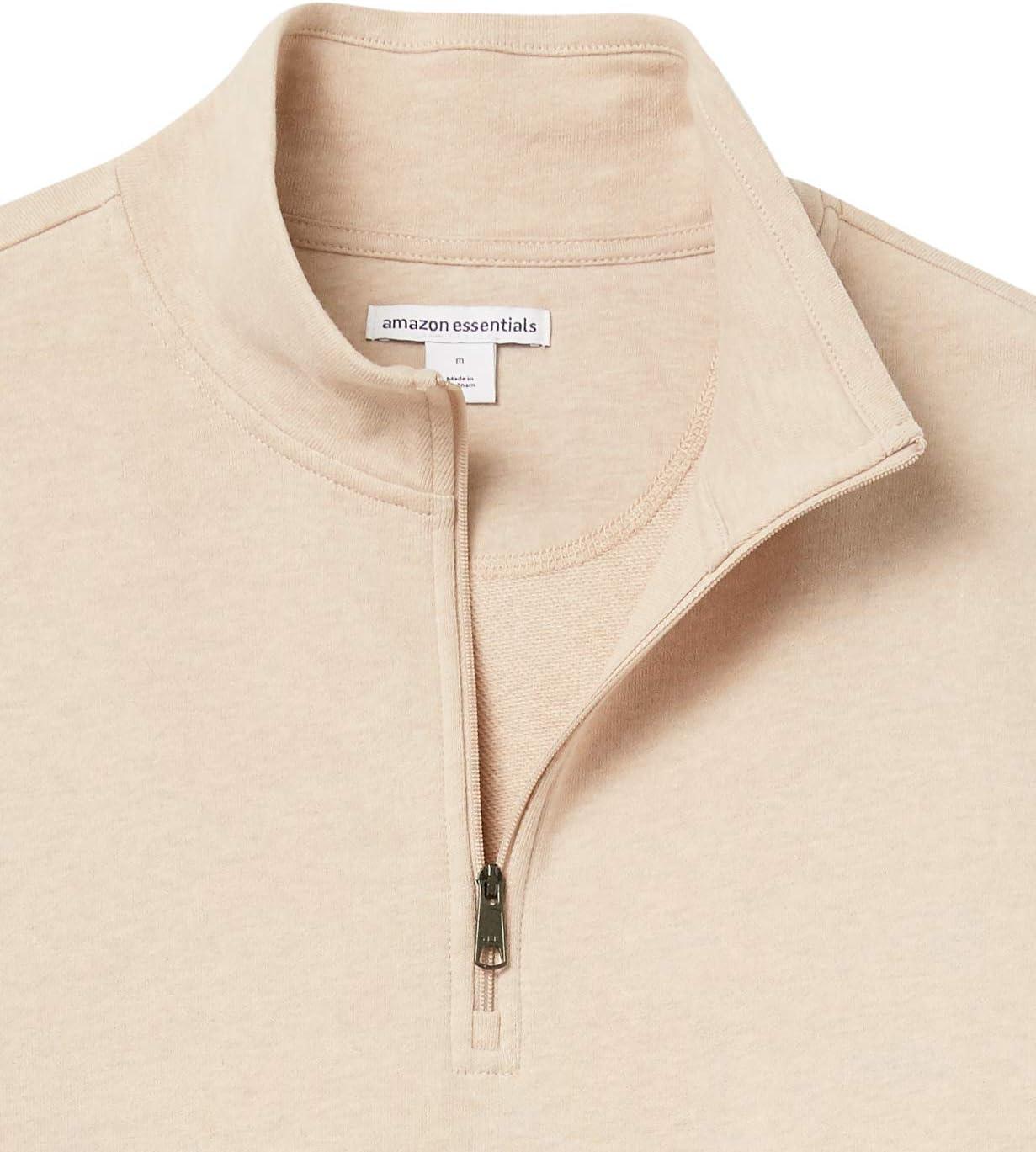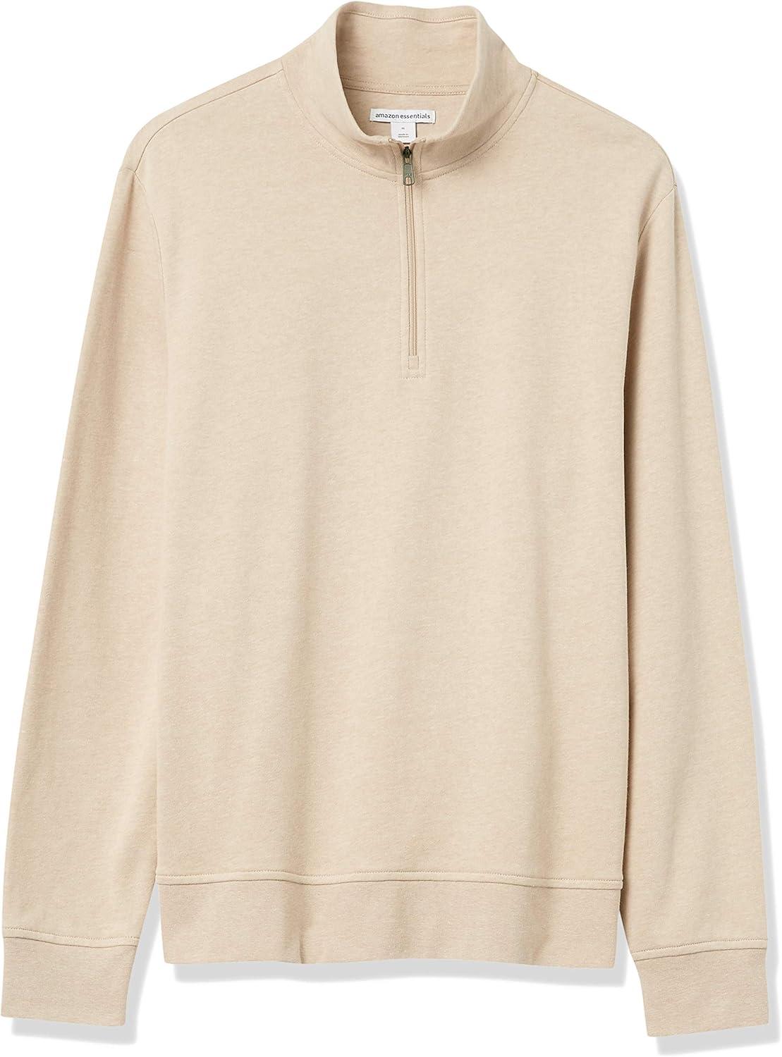 Amazon Essentials Men’s Lightweight French Terry Quarter-Zip Mock Neck Sweatshirt(Tan)