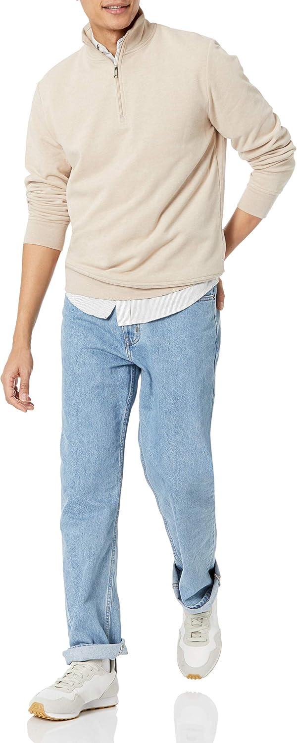 Amazon Essentials Men’s Lightweight French Terry Quarter-Zip Mock Neck Sweatshirt(Oatmeal Heather)