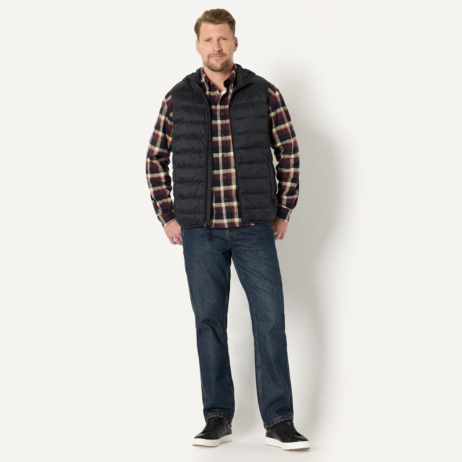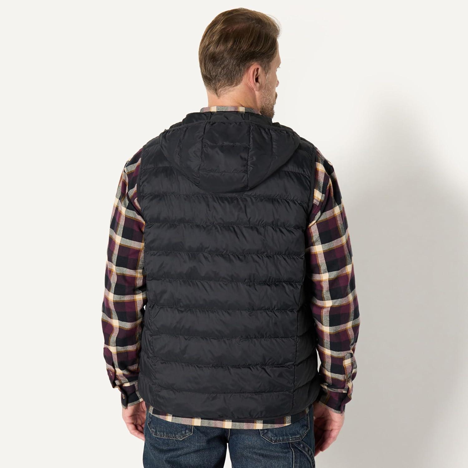 Amazon Essentials Mens Lightweight Water-Resistant Hooded Puffer Vest(Black)