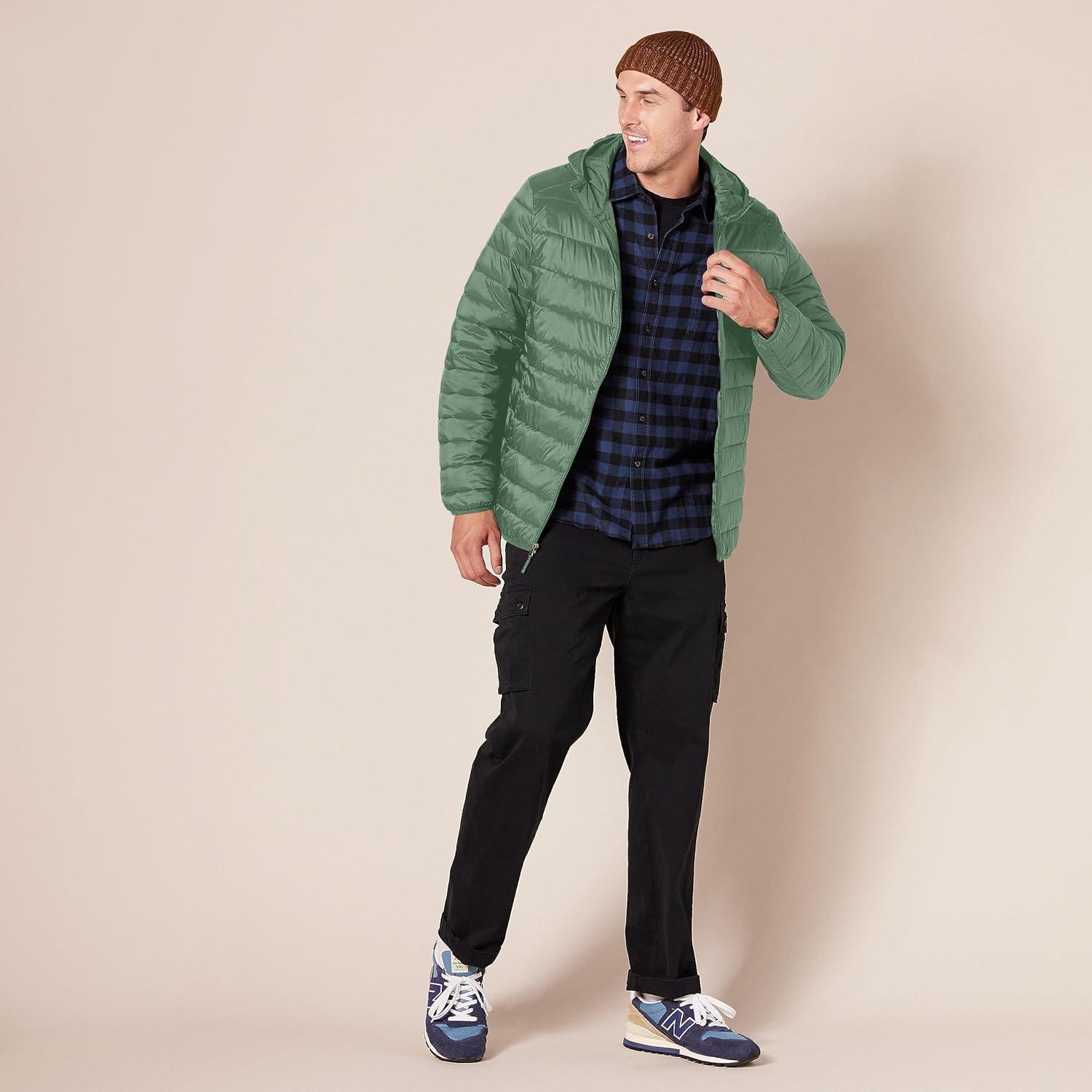 Amazon Essentials Men’s Lightweight Water-Resistant Packable Hooded Puffer Jacket(Green)
