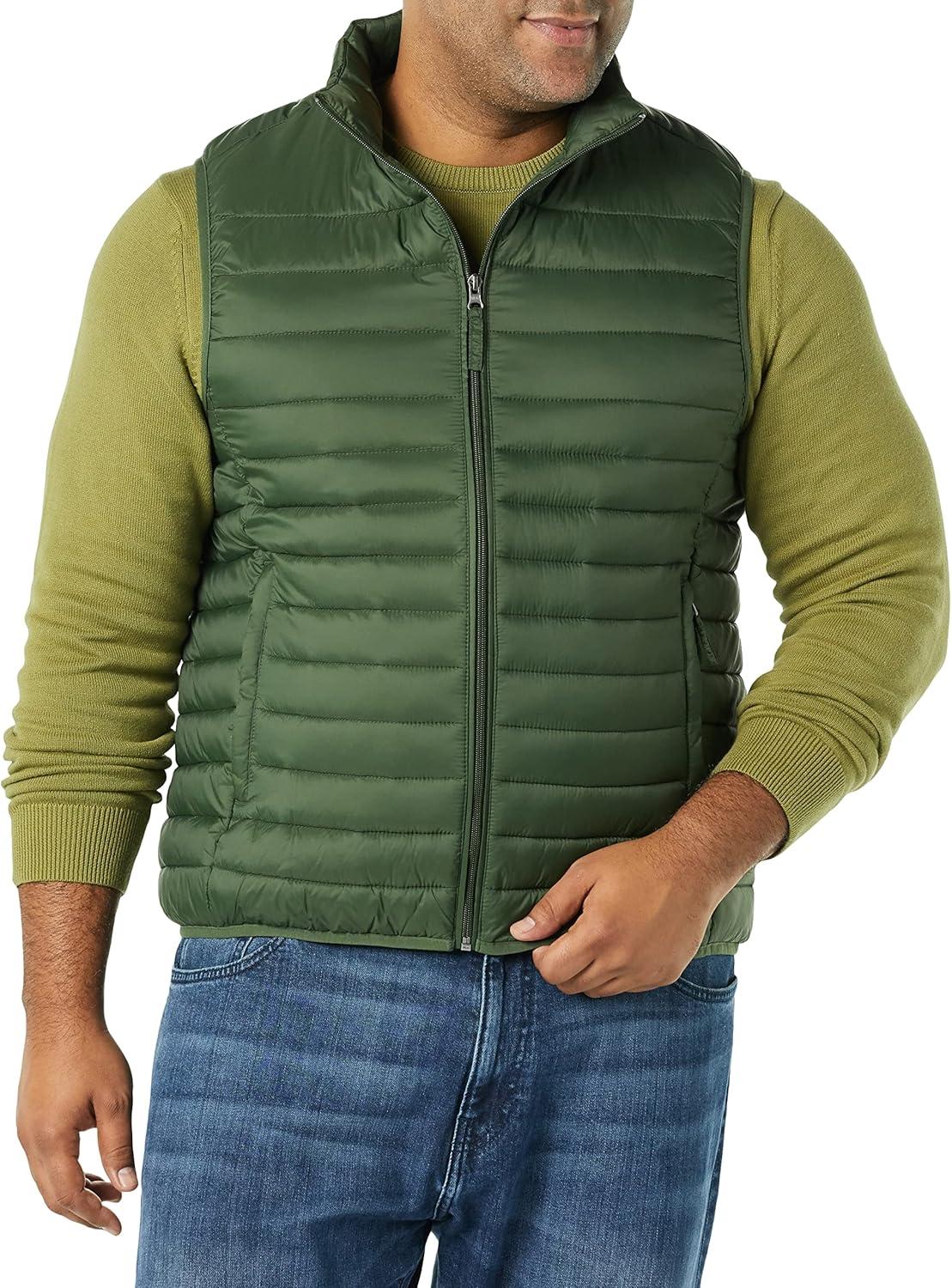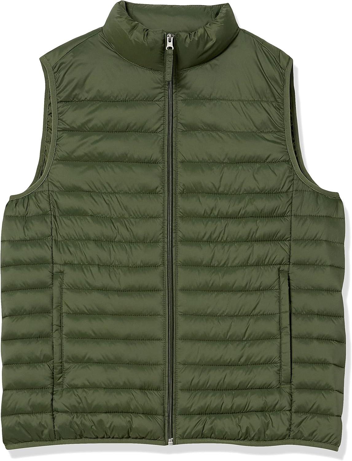 Amazon Essentials Men’s Lightweight Water-Resistant Packable Puffer Vest(Dark Olive)