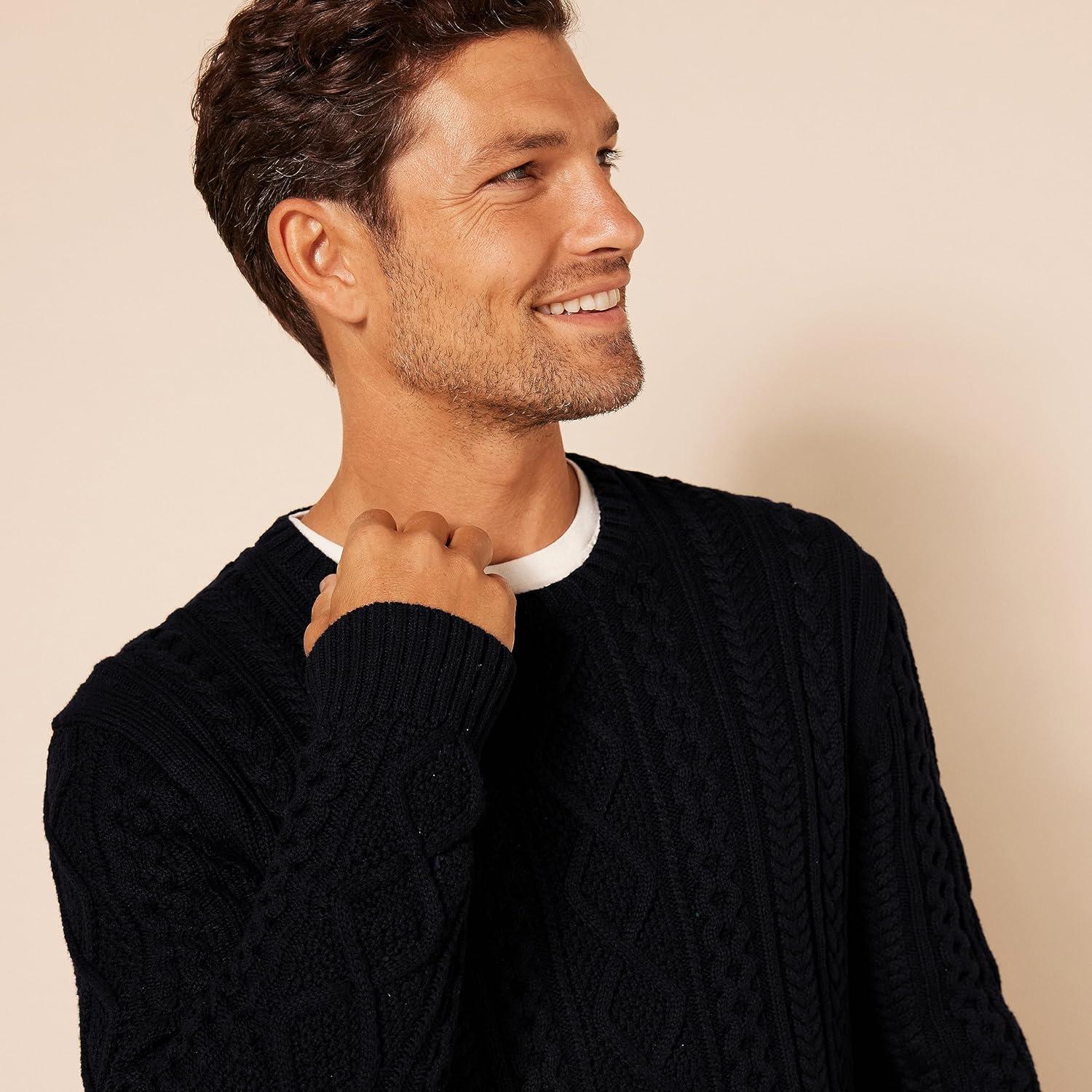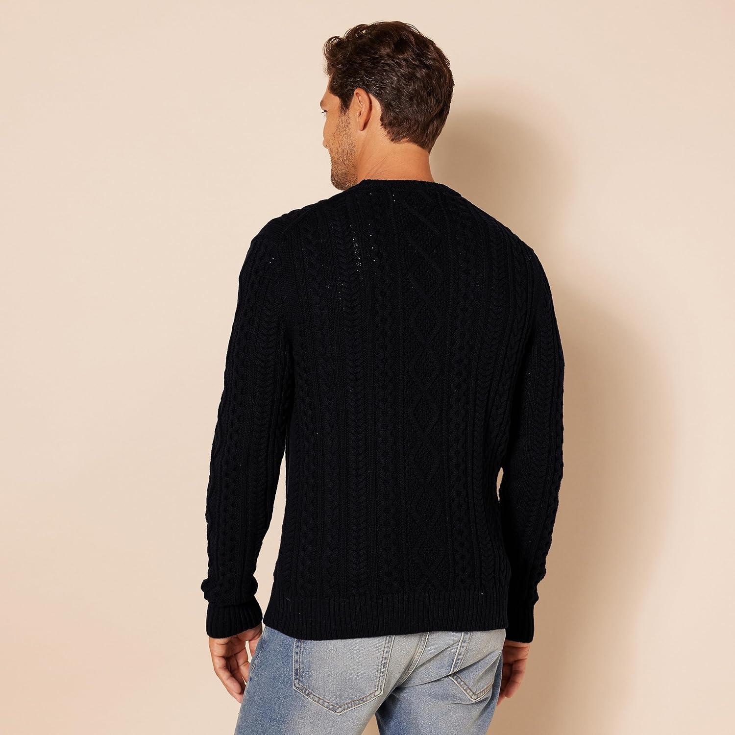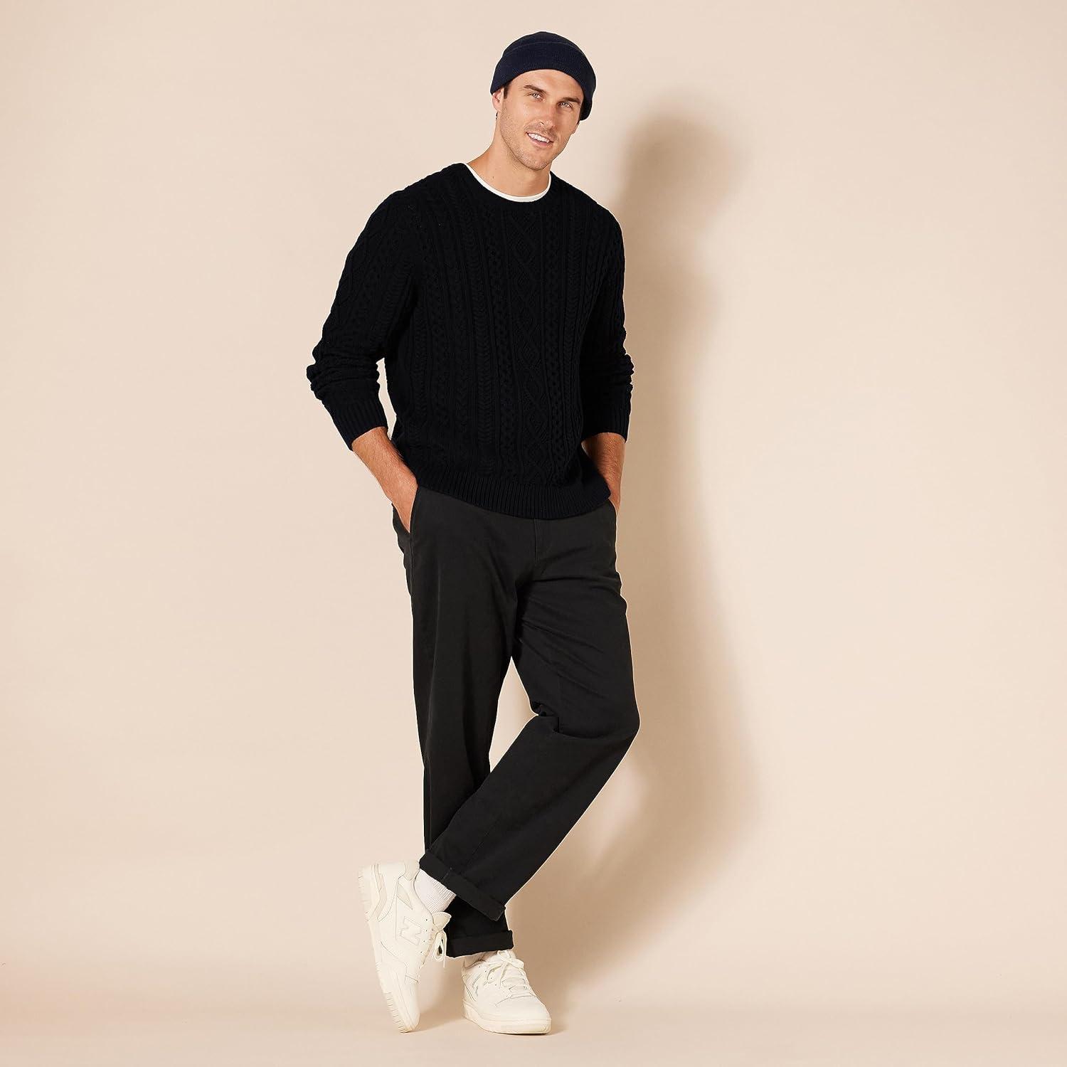 Amazon Essentials Men’s Long-Sleeve 100% Cotton Fisherman Cable Crewneck Sweater(Black)
