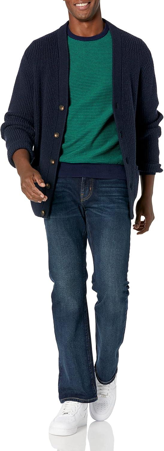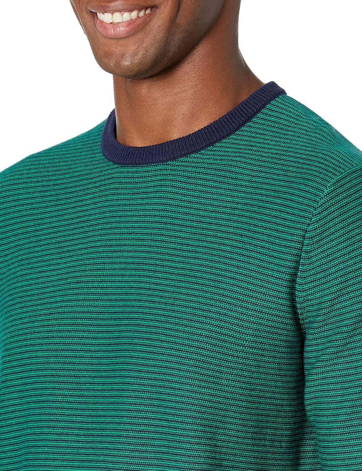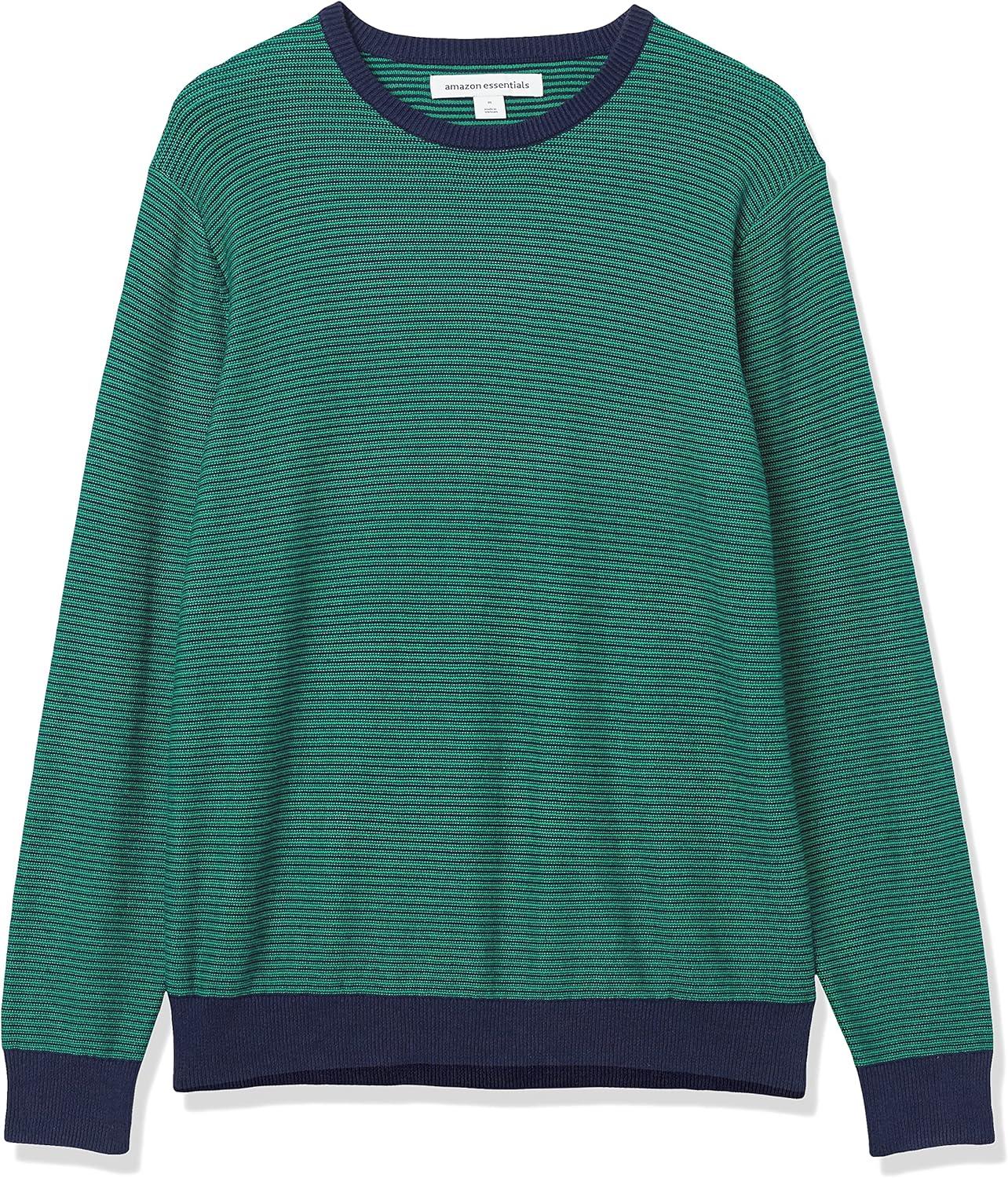 Amazon Essentials Men’s Long-Sleeve Crewneck Sweater, 100% Cotton, Big & Tall Options Available(Emerald Green Stripe)