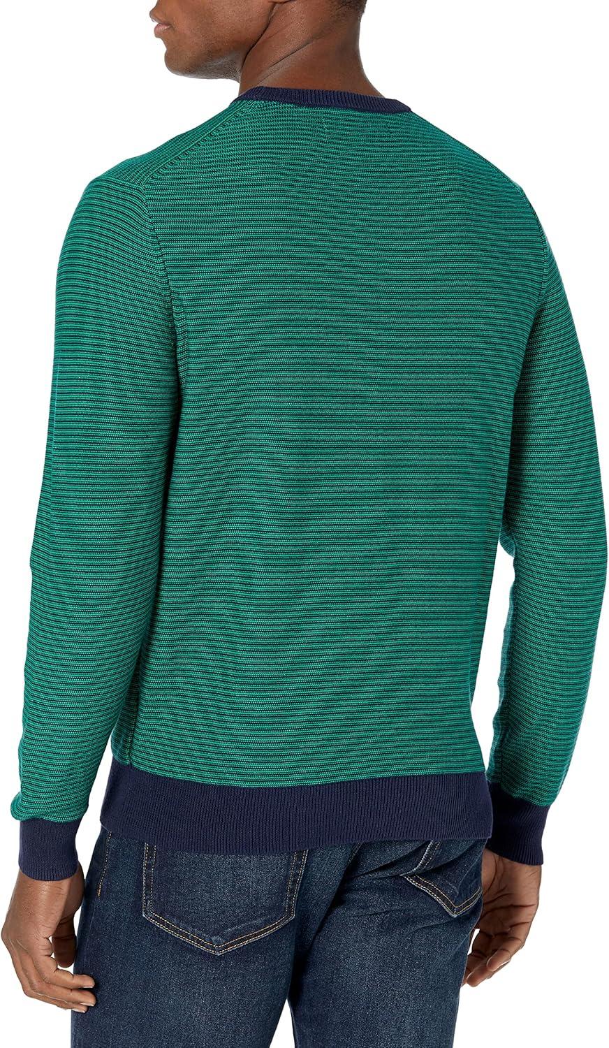Amazon Essentials Men's Long-Sleeve Crewneck Sweater, 100% Cotton, Big & Tall Options Available(Emerald Green Stripe)