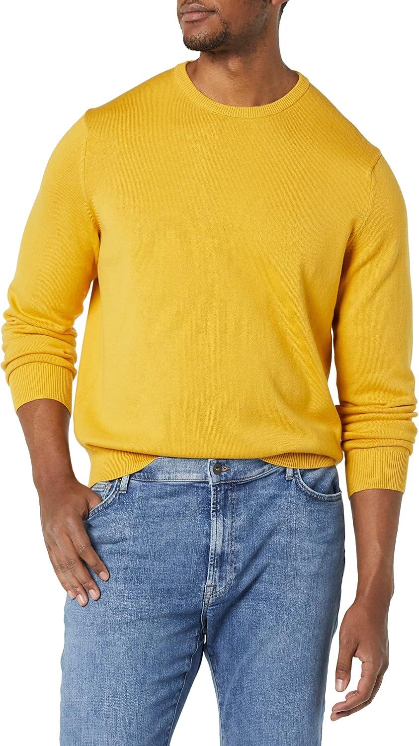 Amazon Essentials Men's Long-Sleeve Crewneck Sweater, 100% Cotton, Big & Tall Options Available(Gold)