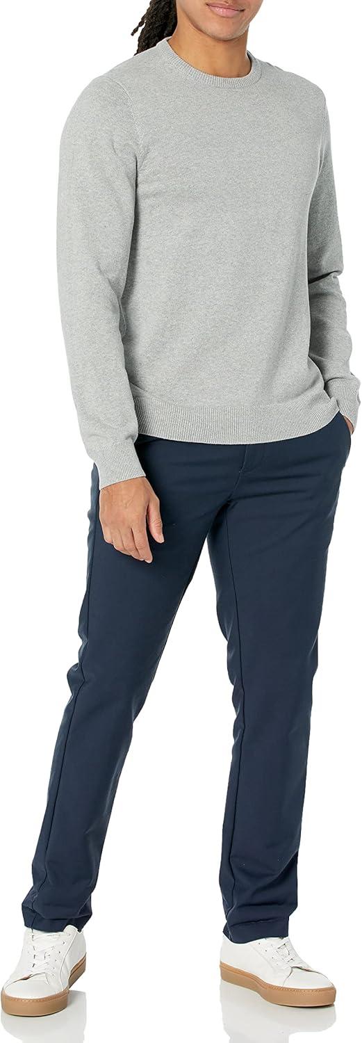 Amazon Essentials Men's Long-Sleeve Crewneck Sweater, 100% Cotton, Big & Tall Options Available(Light Grey Heather)