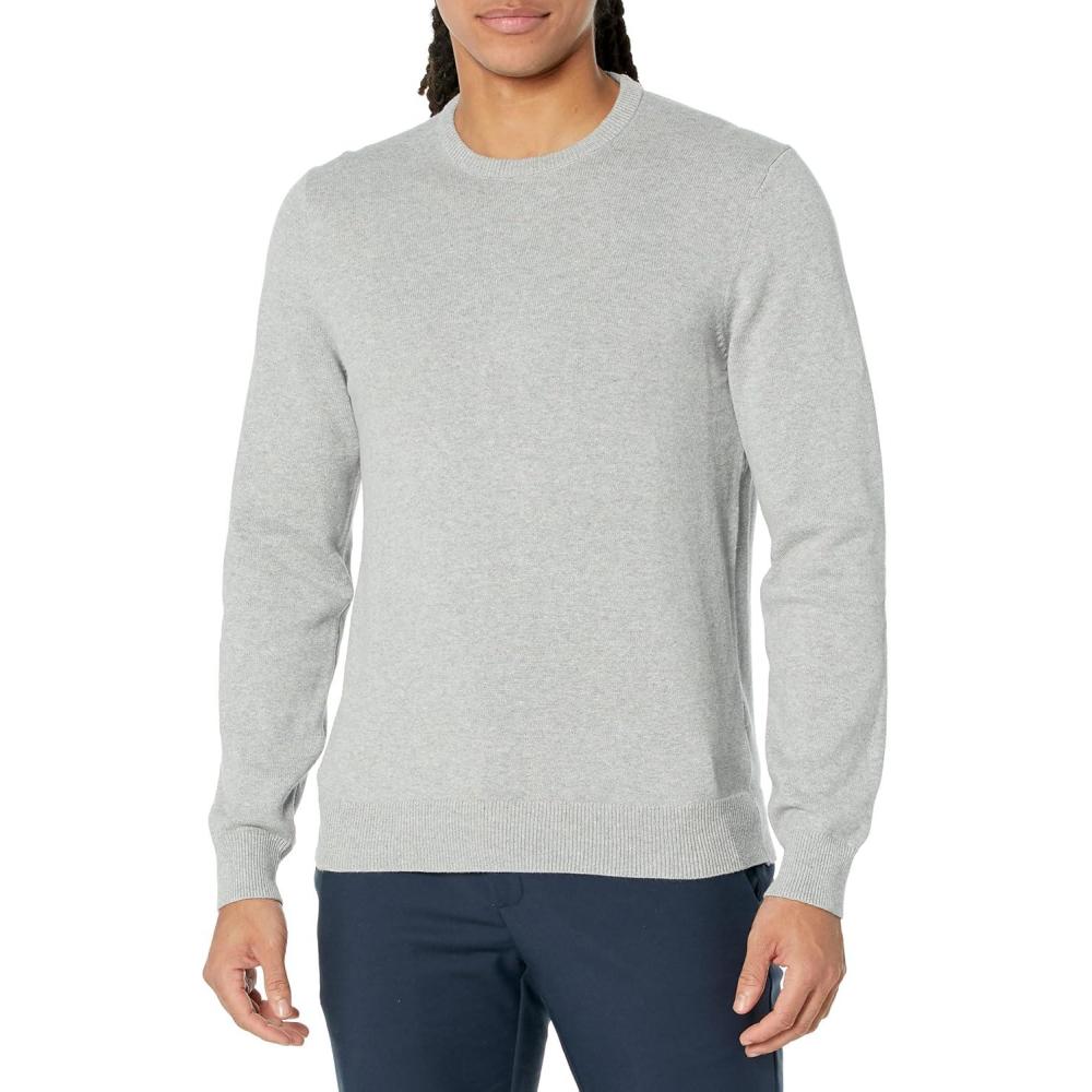 Amazon Essentials Men’s Long-Sleeve Crewneck Sweater, 100% Cotton, Big & Tall Options Available(Light Grey Heather)